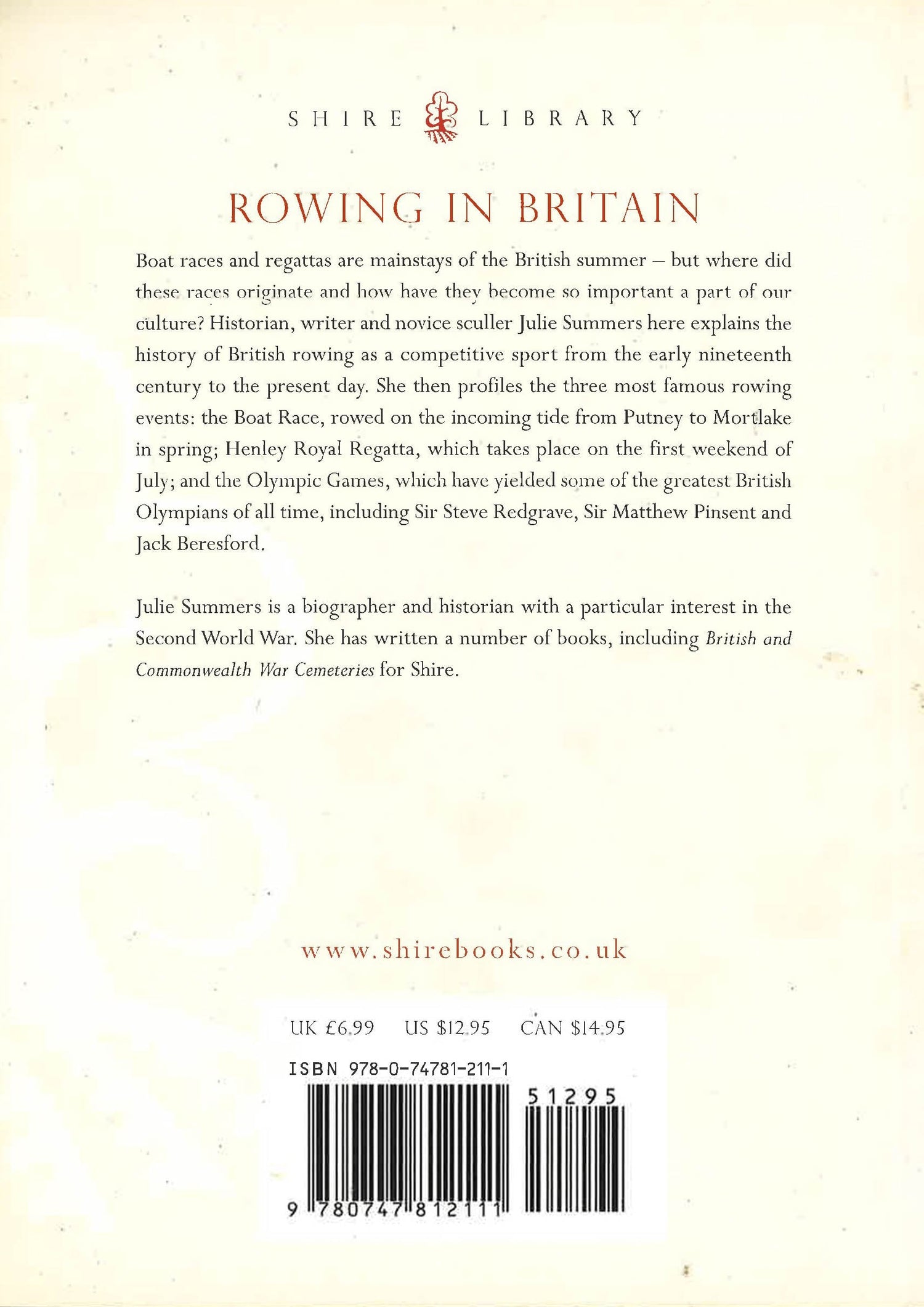 Boat races and regattas are mainstays of the British summer - but where did these races originate and how have they become so important a part of our culture? Historian, writer and novice sculler Julie Summers here explains the history of British rowing as a competitive sport from the early nineteenth century to the present day. She then profiles the three most famous rowing events: the Boat Race, rowed on the incoming tide from Putney to Mortlake in spring; Henley Royal Regatta, which takes place on the first weekend of July; and the Olympic Games, which have yielded some of the greatest British Olympians of all time, including Sir Steve Redgrave, Sir Matthew Pinsent and Jack Beresford.