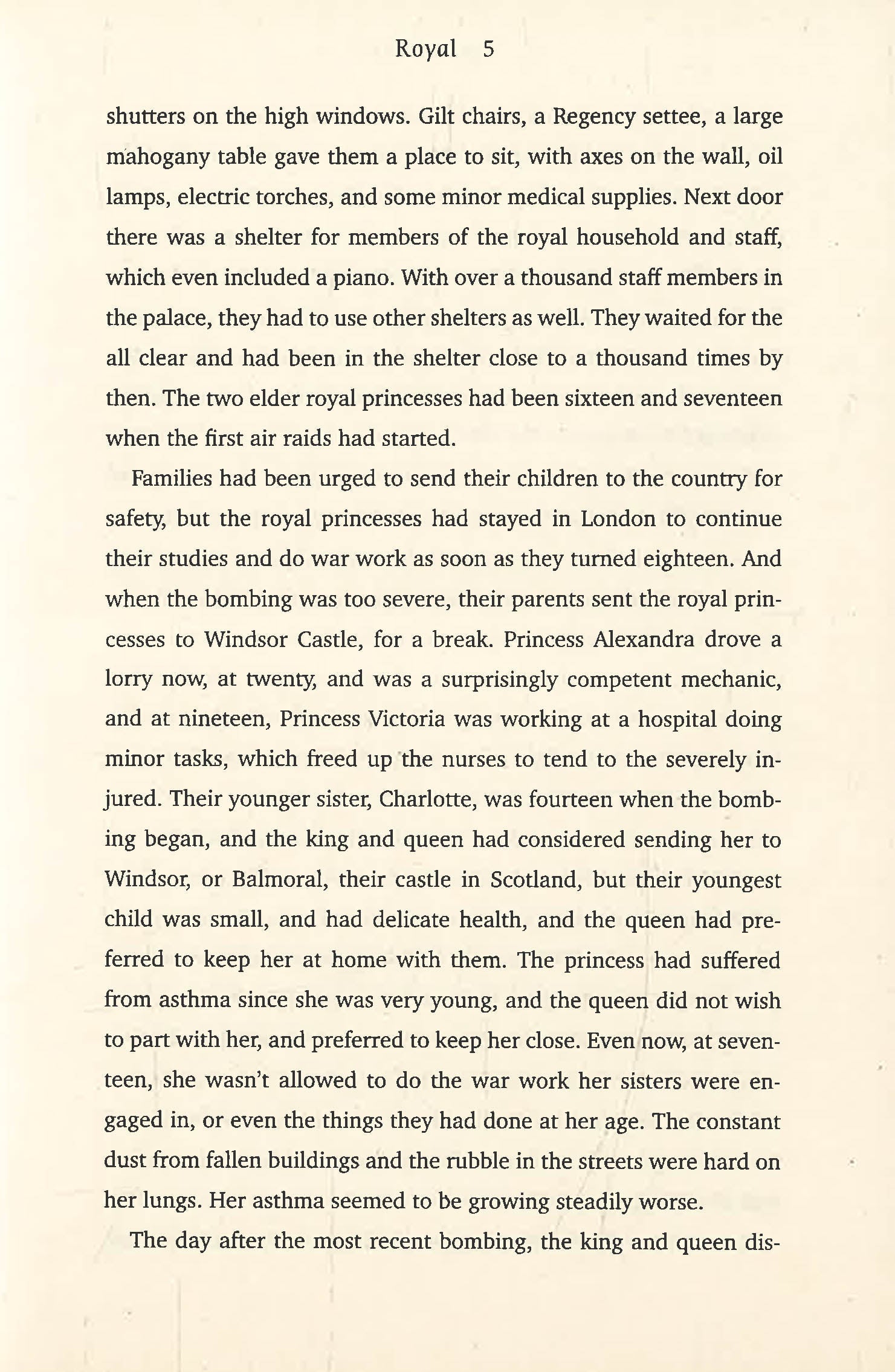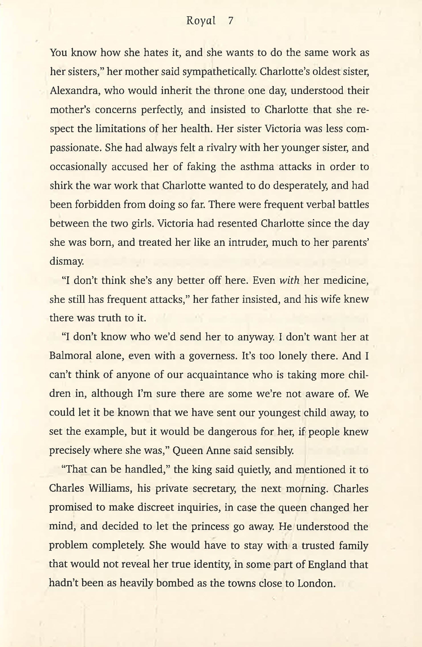 As the war rages on in the summer of 1943, causing massive destruction and widespread fear, the King and Queen choose to quietly send their youngest daughter, Princess Charlotte, to live with a trusted noble family in the Yorkshire countryside. Despite her fiery, headstrong nature, the princess's fragile health poses far too great a risk for her to remain in war-torn London.