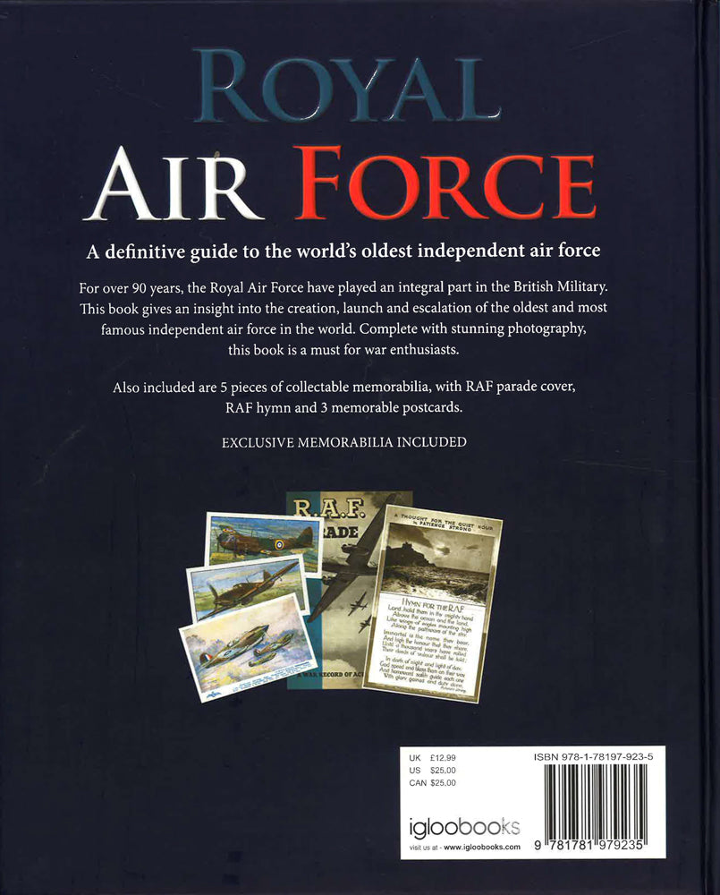 Also included are 5 pieces of collectable memorabilia, with RAF parade cover, RAF hymn and 3 memorable postcards.