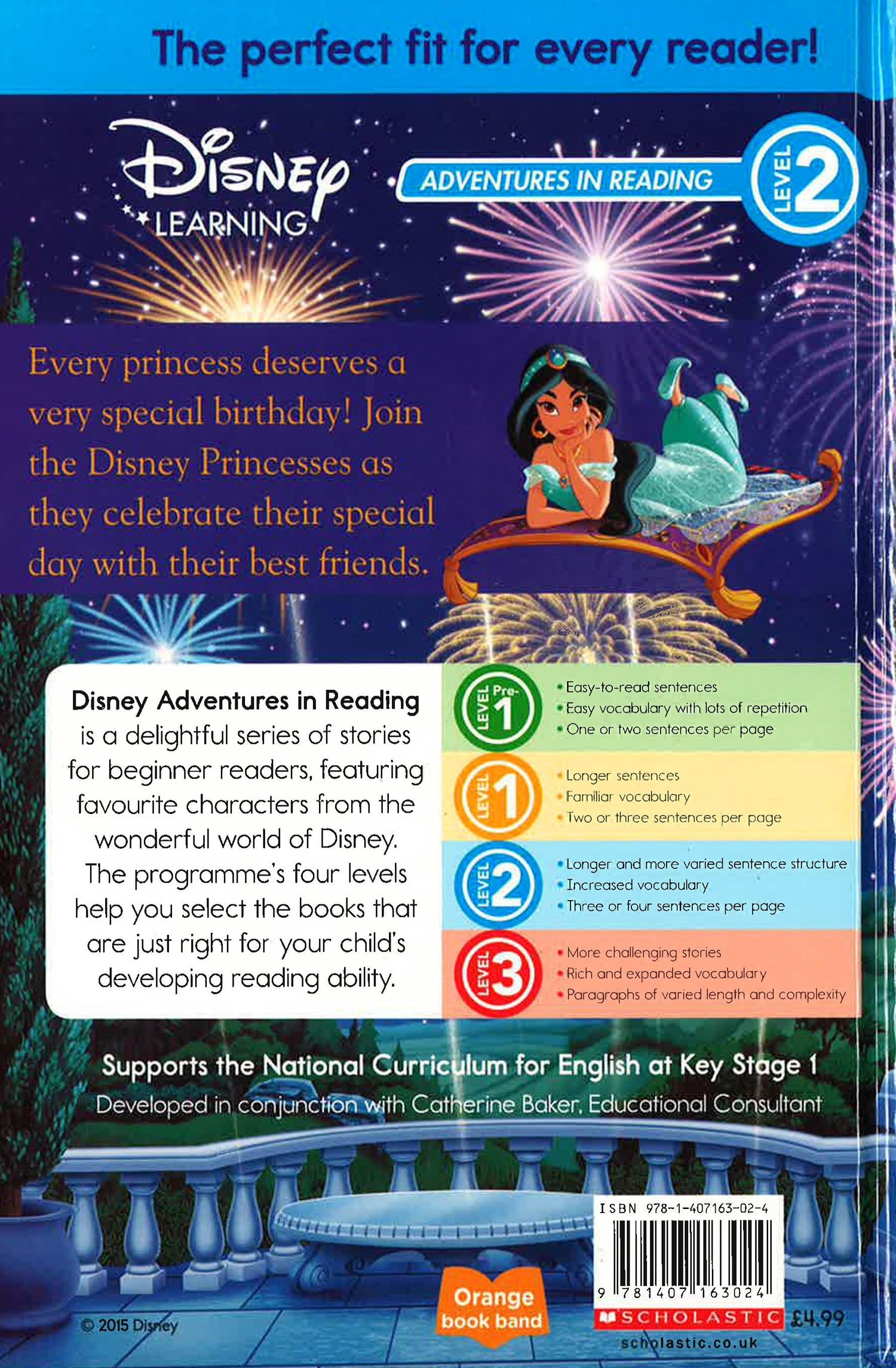 Every princess deserves a very special birthday! Join the Disney Princesses as they celebrate their special day with their best friends. Disney Adventures in Reading, Level 2: Longer and varied sentence structure, increased vocabulary, three or four sentences per page. Disney Learning: Adventures in Reading is a delightful series of stories for beginner readers, featuring favourite characters from the wonderful world of Disney. The programme's four levels and relevant book band colours help you select the books that are just right for your child's developing reading ability.