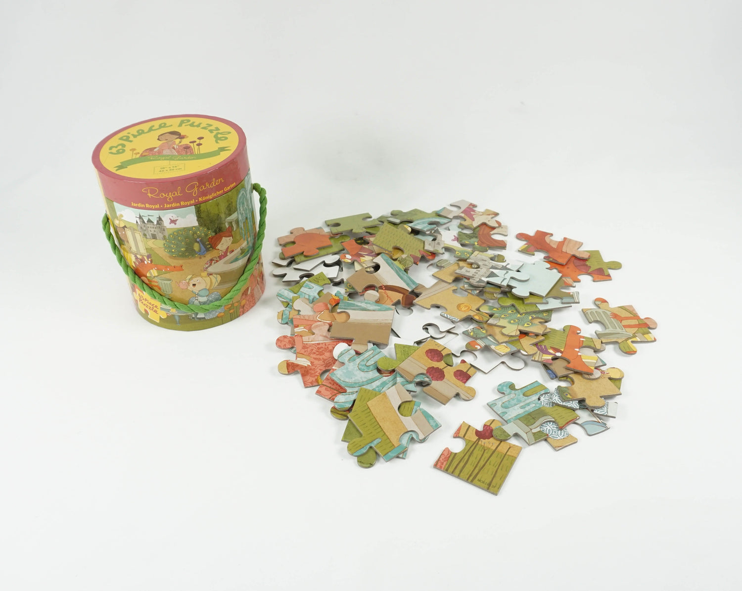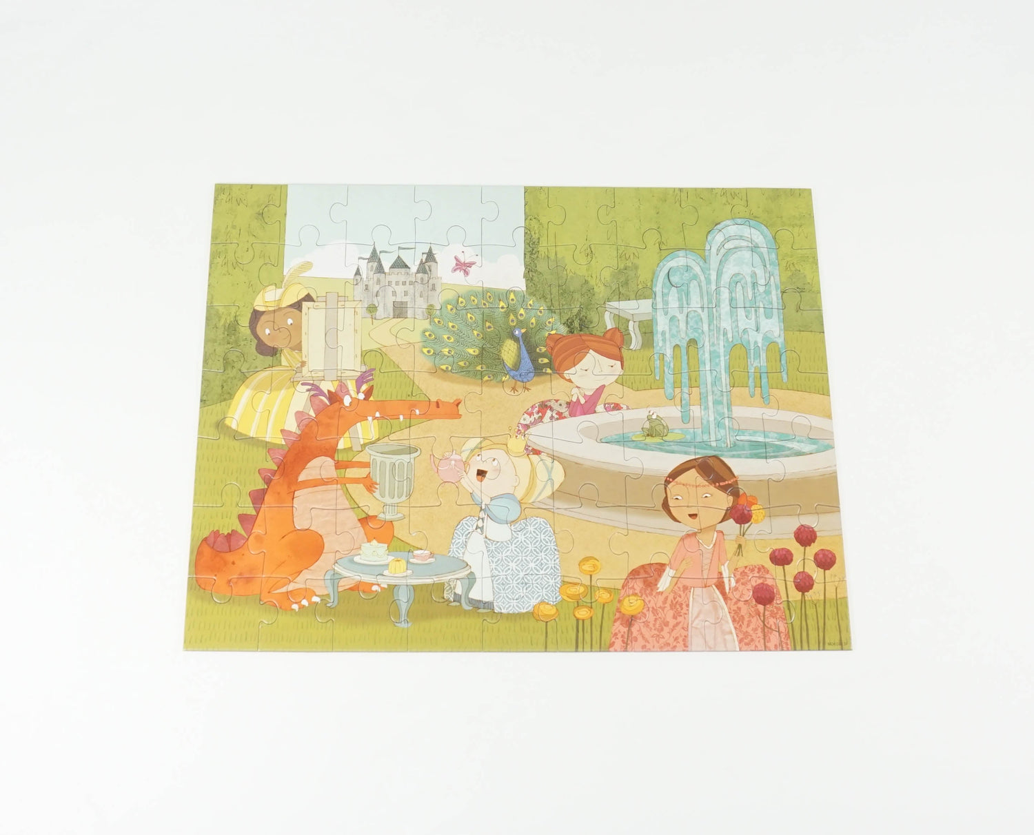 You're invited to a garden party! Four lovable princesses and their friendly dragon enjoy a picturesque afternoon on our Royal Garden 63 Piece Puzzle. This delightful puzzle comes in a handy cylindrical canister with a colorful rope handle. Easy to store and to carry, this puzzle is a perfect rainy day activity. -Packaged in a sturdy, stackable canister -Colorful rope handle -Ages 6+ -Canister: 5-inch diameter x 6 in. high (13 cm diameter x 15 cm high) -Puzzle: 18 x 14 in. (46 x 36 cm)