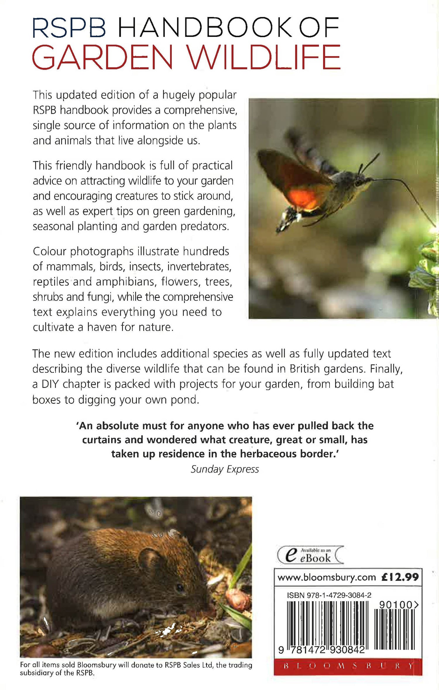 This friendly handbook is full of practical advice on attracting wildlife to your garden, and encouraging creatures to stick around, as well as expert tips on green gardening, seasonal planting and garden predators.Colour photographs illustrate hundreds of mammals, birds, insects, invertebrates, reptiles and amphibians, flowers, trees, shrubs and fungi, while the comprehensive text explains everything you need to cultivate a haven for nature.The new edition includes additional species as well as fully updated text describing the diverse wildlife that can be found in British gardens. Finally, a DIY chapter is packed with projects for your garden, from building bat boxes to digging your own pond.