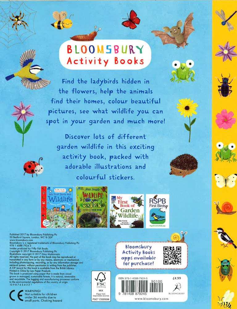 Discover the different wildlife hiding in your garden with this stunning activity book. Play spot the difference with the ladybirds, help the robin find the worms, help the hedgehog find his tracks, draw a fox and much more!