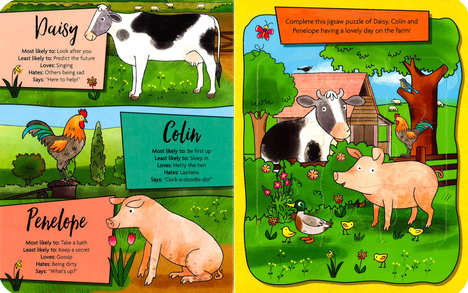 A fun Jigsaw book featuring all of the animals from Buttercup Farm. Includes 5 jigsaw pages with beautiful designs.