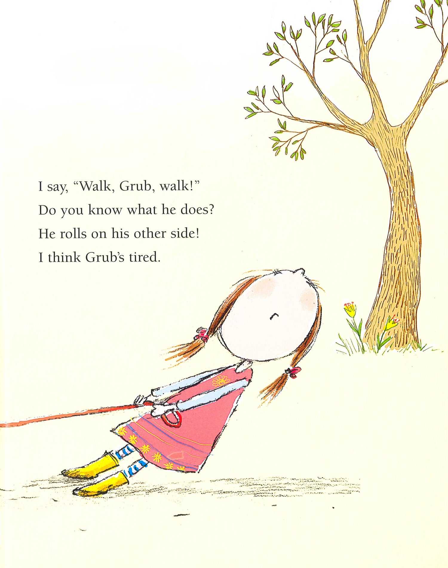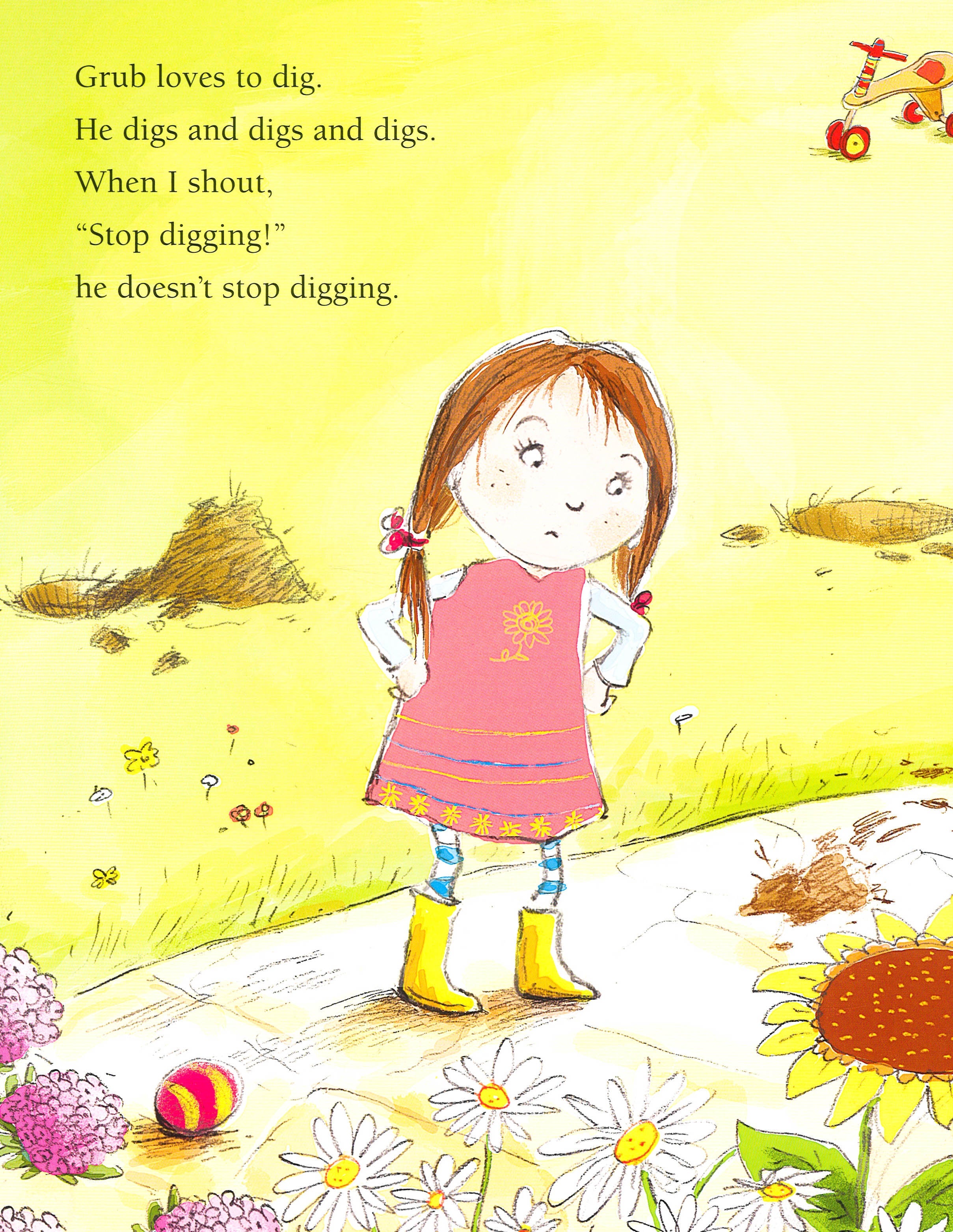 Ruby is three and her beloved Grub is a very grubby, mucky pup! He is also very naughty - he digs in the garden, rolls in the mud, runs away and makes muddy paw prints everywhere. Eventually Mum has had enough. 'That is it!' she says. 'Grub, you are just too naughty, too mucky and too much trouble. You will have to go!' But after Grub has been taken to live with Uncle Tom and his three dogs, everyone misses him. So Grub comes home again and before long everywhere is a mess again .