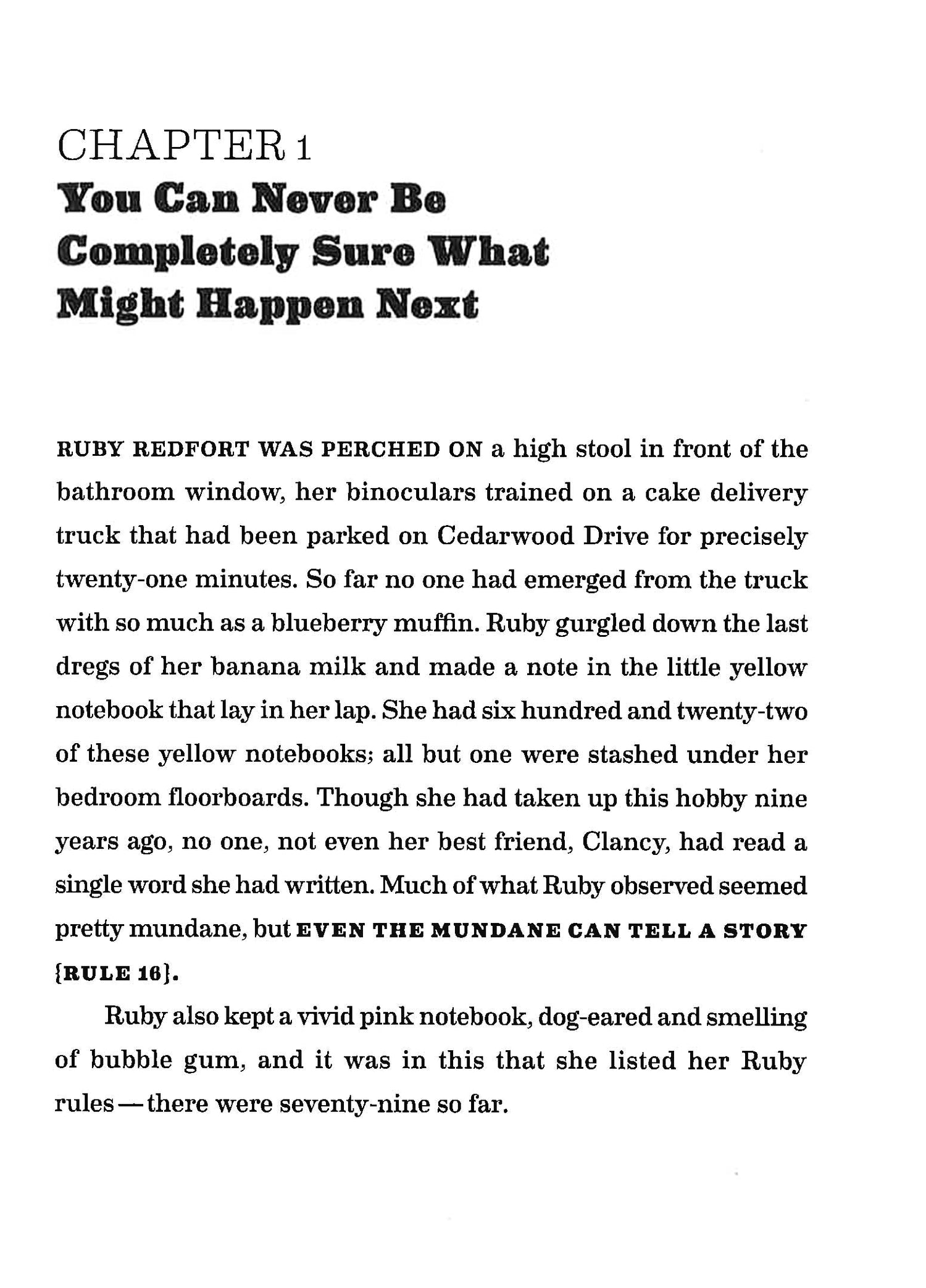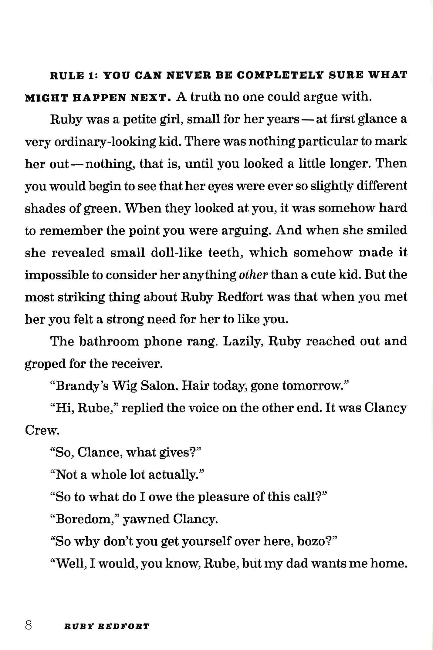 Hey, buster! Crack open this new series starring Ruby Redfort Clarice Bean's favorite all-action heroine and you will literally be on the edge of your wits. Everyone knows that Clarice Bean is keen on the Ruby Redfort books. Now in her own starring role, Ruby, a genius code-cracker and daring detective, along with her sidekick butler, Hitch, work for a secret crime-busting organization called Spectrum. Ruby gets into lots of scrapes with evil villains, but shes always ice-cool in a crisis. Just take a classic screwball comedy, add heaps of breathtaking action, and multiply it by Lauren Childs writing genius, and what have you got? Only the most exciting new middle-grade series since, like, ever.