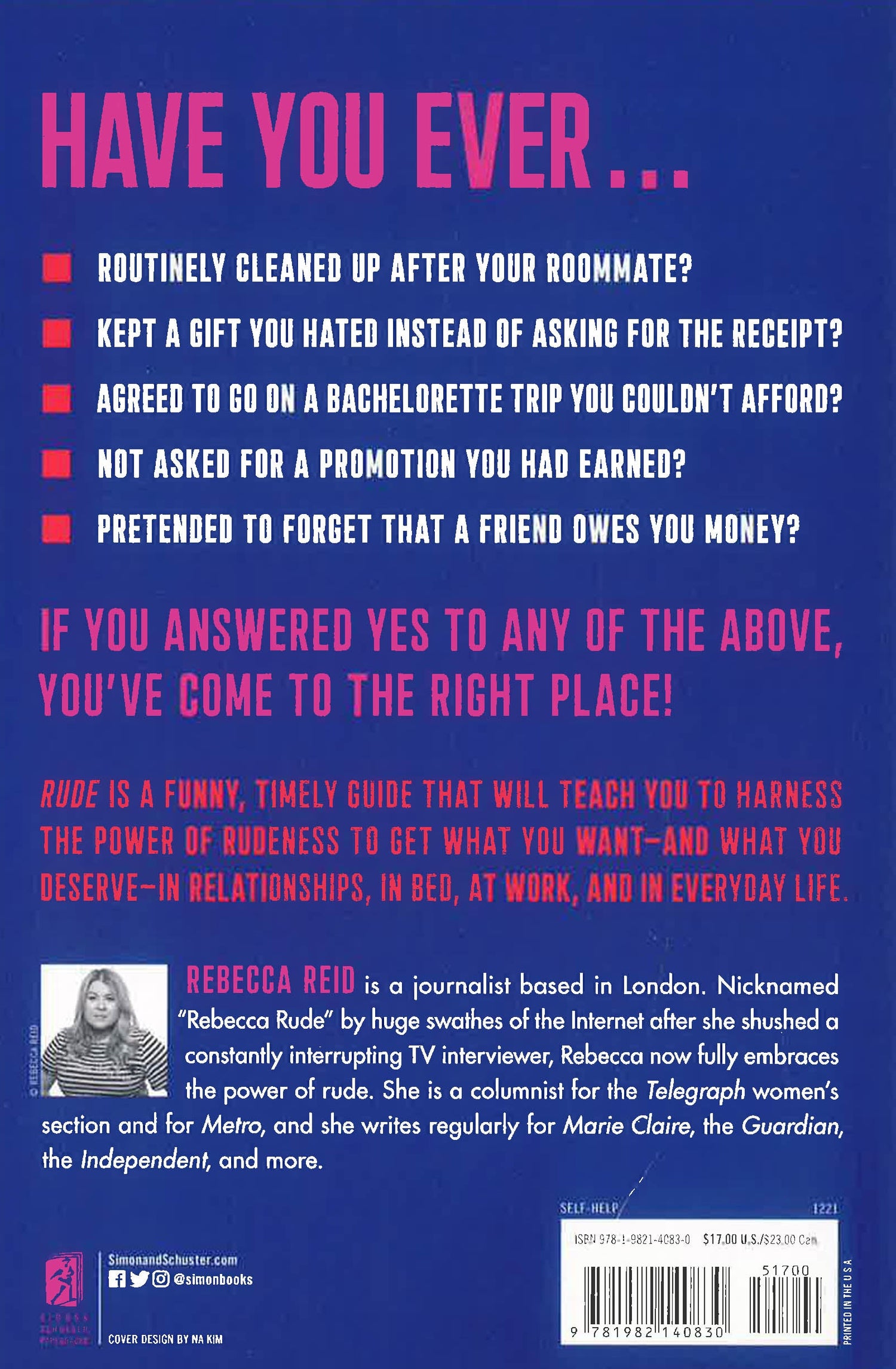 A captivating blend of advice and pop culture, this “breezy feminist guide” (Publishers Weekly) shows you how to use the power of boldness in every area of your life. Exploring famous women who have been perceived as rude—including Princess Margaret, Anna Wintour, Taylor Swift, Meghan Markle, and others—Rude demonstrates how those women used their “rudeness” to get what they want and deserve out of life.