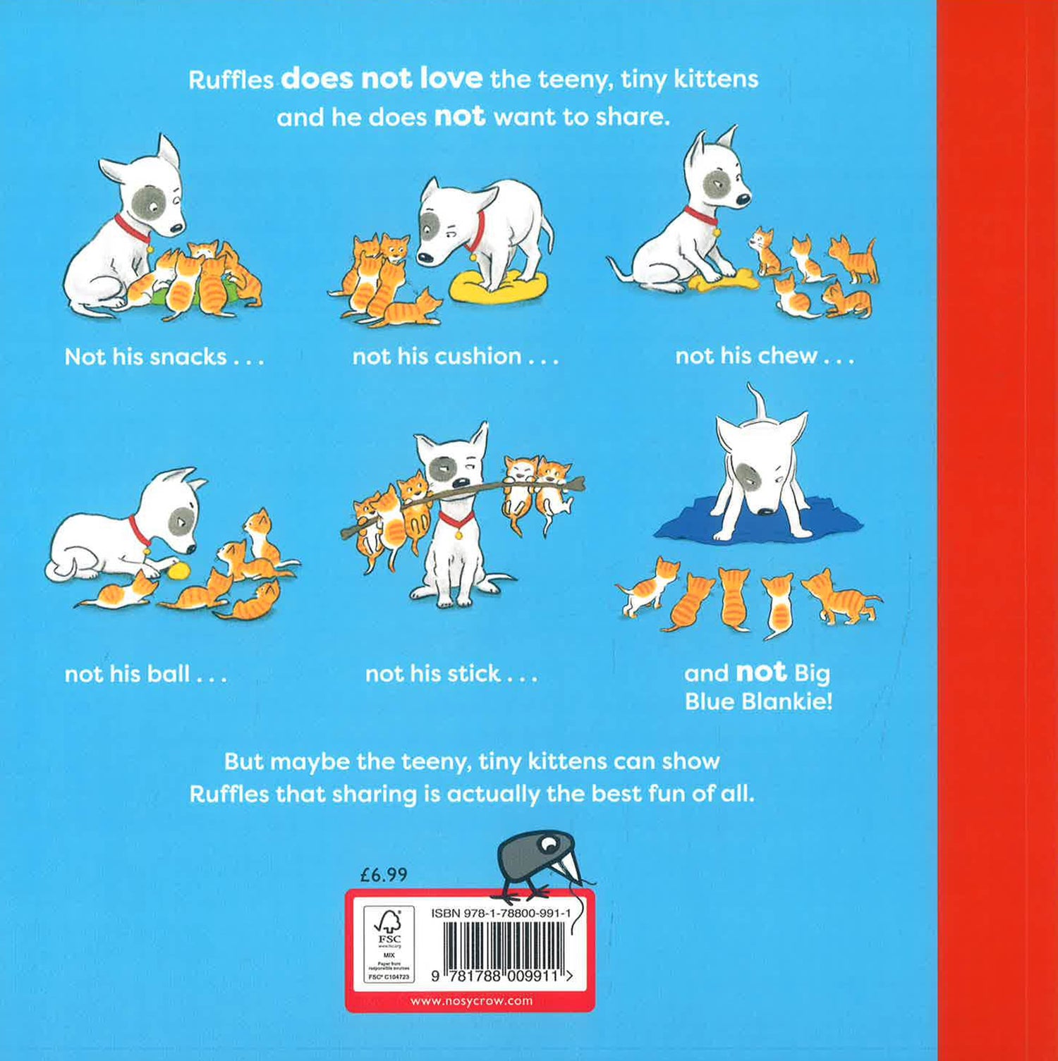 Ruff! Ruff! Meet Ruffles, the playful puppy who faces all the tricksy troubles of preschool life in this new picture book series from the award-winning author and illustrator David Melling. Just like every preschooler, Ruffles the puppy experiences all the ups and downs of daily life as he learns about the world around him. There are LOTS of things he likes and LOTS of things he doesn't . . . and he doesn't always get things quite right! The Teeny Tiny Kittens have come to stay and Ruffles is NOT happy. They pounce and purr and snore and jump and POOP! Worst of all, they want to play with Big Blue Blankie, and Ruffles doesn't want to share. But the Teeny Tiny Kittens don't understand and there's trouble when Big Blue Blankie is accidentally ripped. Luckily, Ruffles' new feline friends show him that sharing together is the very best way to make friends and play. With brilliantly observed and hilarious animal illustrations by David Melling, whose series, Hugless Douglas, has sold over 2 million copies worldwide. The hilarious follow up to Ruffles and the Red, Red Coat, where Ruffles does NOT like wearing his coat on a rainy day!A perfect picture book series for bedtime!Every Nosy Crow paperback picture book comes with a free "Stories Aloud" audio recording. Just scan the QR code and listen along!