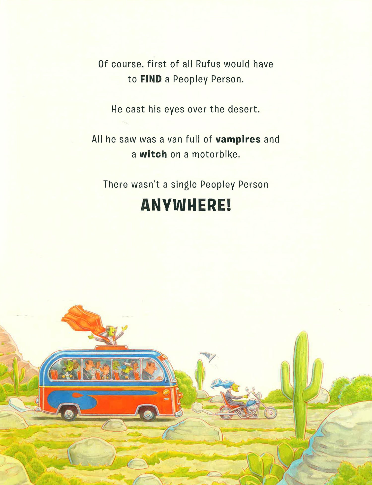 Rufus is a monster. But he doesn't feel like a Tip-Top monster. Every monster book he's read says that monsters are supposed to scare Peoply People and there aren't any of those in his desert.