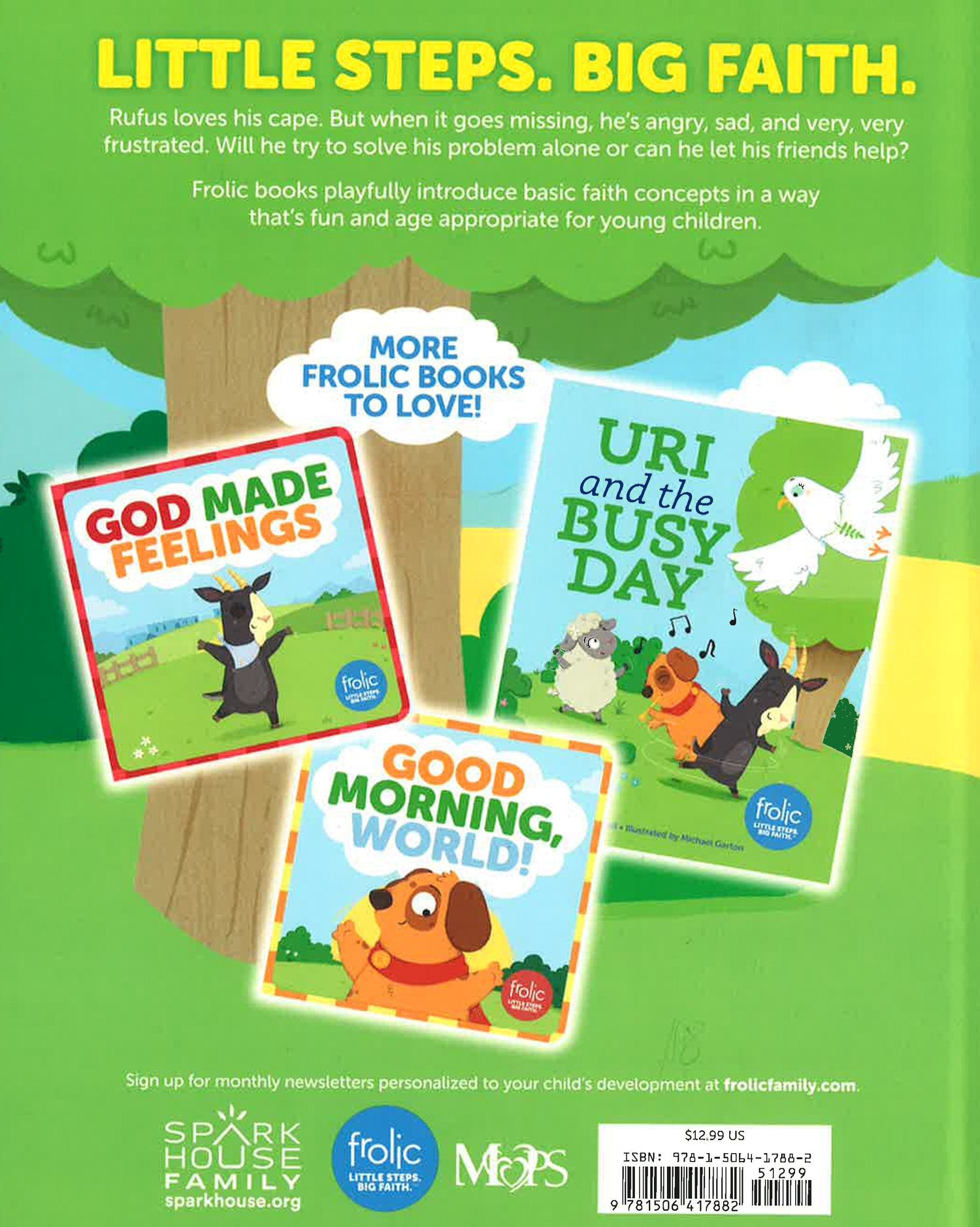Rufus loves his cape. But when it goes missing, he's angry, sad, and very, very frustrated. Will he try to solve his problem alone or can he let his friends help? Frolic books playfully introduce basic faith concepts in a way that's fun and age appropriate for young children.