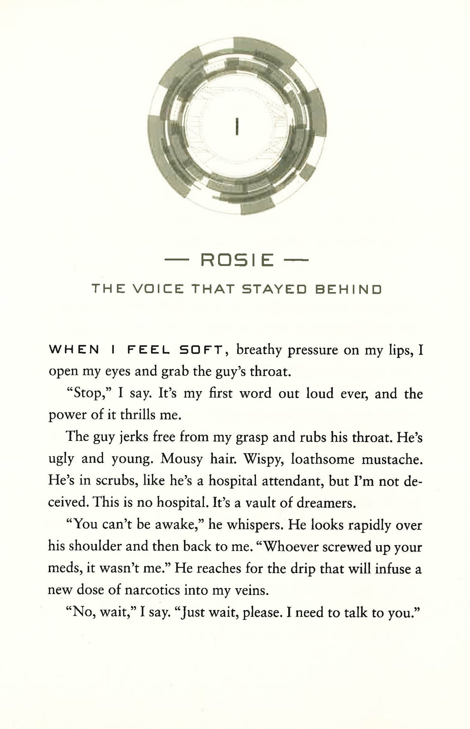 Welcome to the remote, exclusive Chimera Centre, where families of coma patients come from all over the world seeking miracles. Althea Flores has just awoken from a six-month coma, defying all expectations. But she can't remember anything about her own life. Instead, she has the memories of Rosie Sinclair, the missing Forge Show star. And Althea is pregnant. In a secret vault, far away, Rosie Sinclair lies sedated, captive to the doctors who mine her dreams. But she knows what she'll do when she's free: wreak vengeance on Dean Berg, the man who stole her dreams and turned them into a nightmare.