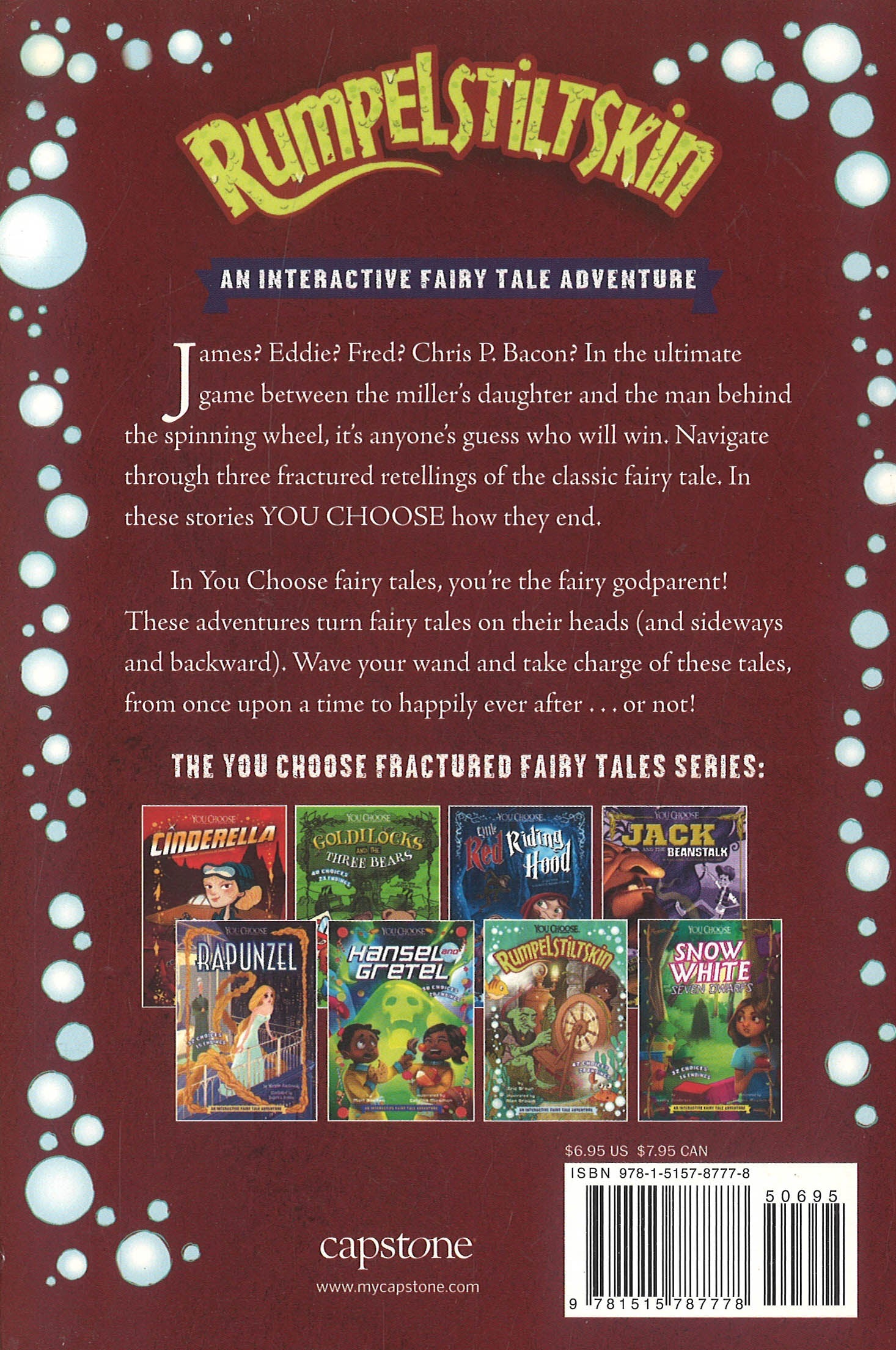 James? Eddie? Freddy? Chris P. Bacon? In the ultimate name game between the miller's daughter and the little man behind the spinning wheel, it's anyone's guess who will win. Navigate through three fractured retellings of the classic fairy tale. In this story, YOU CHOOSE how it ends. Will you guess correctly and live happily ever after?