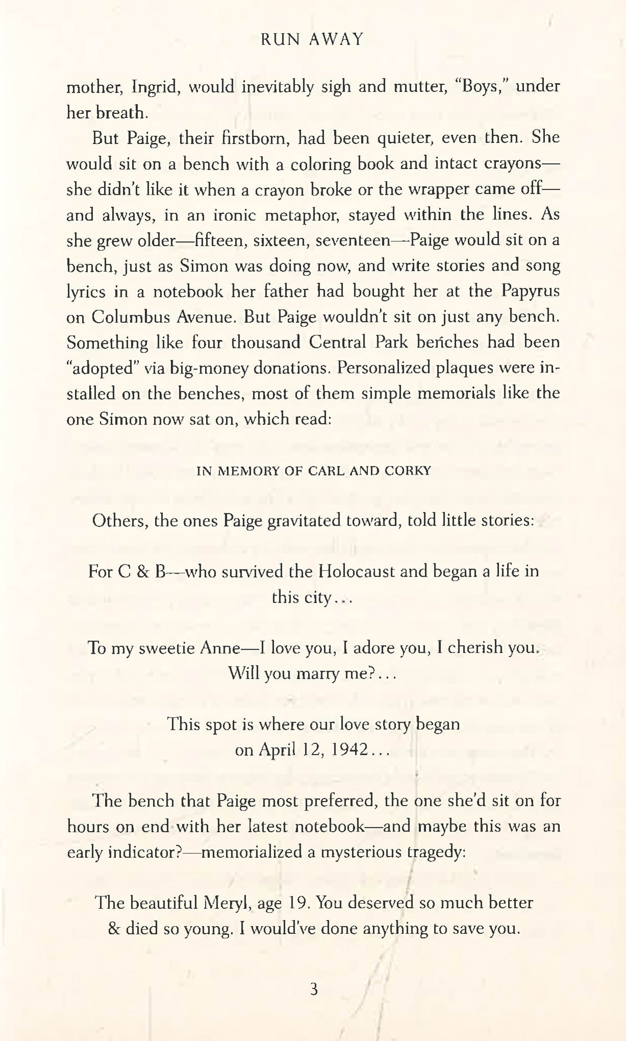 Then, by chance, you see her playing guitar in Central Park. But she's not the girl you remember. This woman is living on the edge, frightened, and clearly in trouble.
