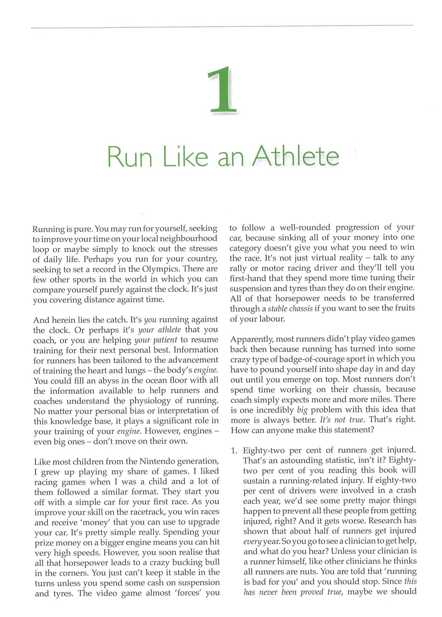 Running is often associated with the quest for your next personal best, and the agony of irritating injuries. This book takes a deeper look at running, and provides you with the knowledge and tools to solve the problems that limit your performance and lead to injuries. If you want answers, tools, secrets to achieve your best, look inside.Running is often associated with the quest for your next personal best, and the agony of irritating injuries. Wouldn't it be great if you learned how to make running easier on the body and more efficient? Run Like an Athlete takes a deeper look at running, and provides you with the knowledge and tools to solve the problems that limit your performance and lead to injuries. If you want answers, tools, secrets to achieve your best, look inside for expert advice. Featuring: -