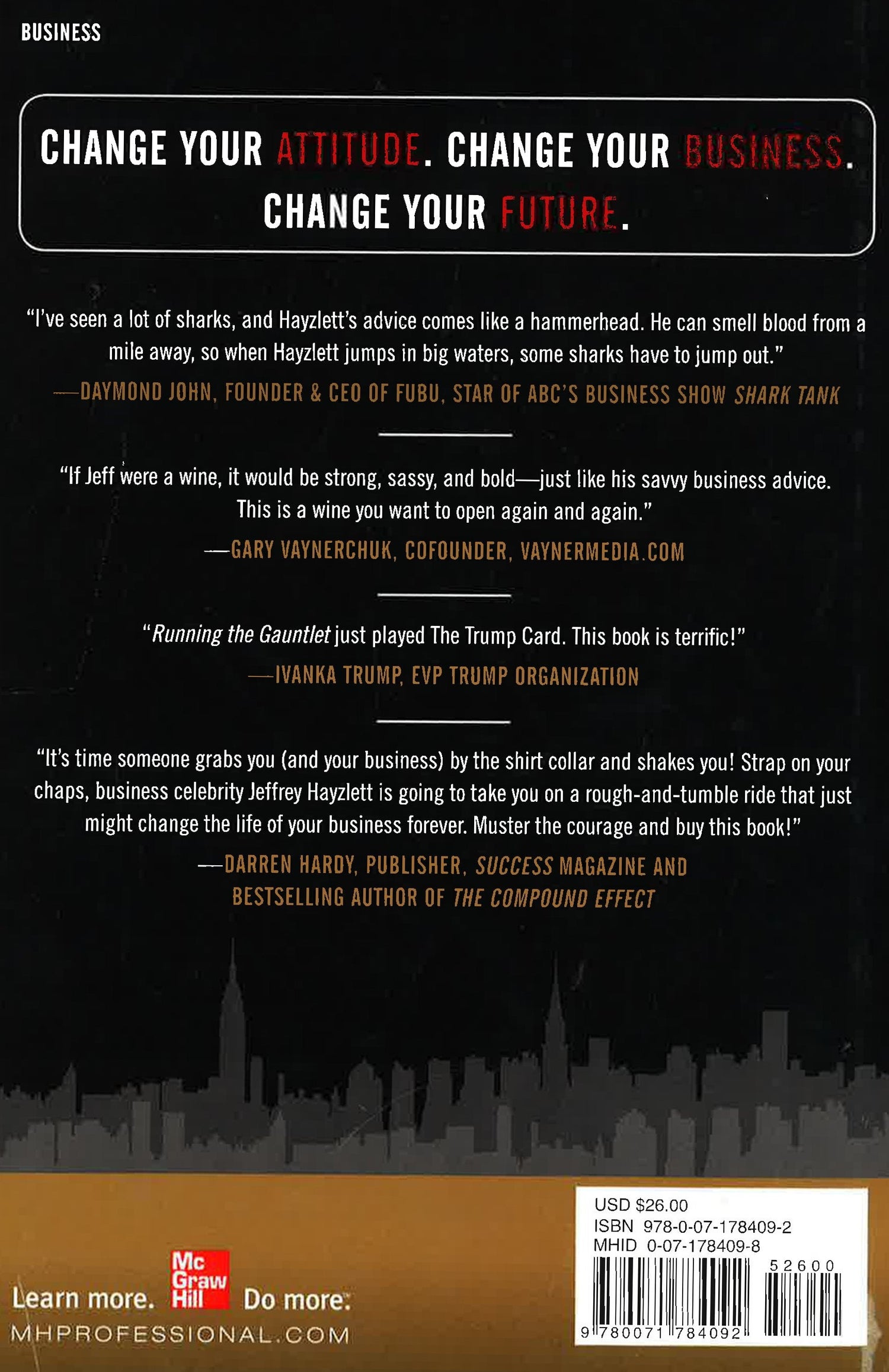 Change your ATTITUDE. Change your BUSINESS. Change your FUTURE. What's stopping you from making the changes your business needs to thrive? The most dangerous move in business is the failure to make a move at all. The history of business is filled with companies that are no more because their leaders refused to enact change when the writing was on the wall. Fear. Apathy. Lack of personal responsibility. These simple human flaws can turn a good company into a dead company. The writing on the wall has never been clearer than it is now-and marketing phenomenon Jeffrey Hayzlett is on a mission to make you see it, understand it, and heed it. Today's business environment is so competitive and volatile that you can't afford to be satisfied with business as usual. You must make changes now to compete in the future. Building on the principles and concepts in his first book The Mirror Test, Hayzlett takes you on a step-by-step journey to: Develop a "takeover mentality" for your businessSummon the vision and courage necessary for driving changeSharpen the mental and emotional toughness to make strategic, lasting changeExecute the right changes and deal with any disruptions they might causeSustain and manage your company's new-found momentum Change is already happening all around you-to products, to organizations, to entire industries. Eventually, it will happen to your company, whether from outside forces or your own initiative. You've always had the ability to institute positive change in your company. Now, with Running the Gauntlet, you have the inspiration and knowledge to make it happen and take control of it-instead of letting it control you. Praise for Running the Gauntlet If the shoe fits, wear it! Jeff's advice fits any hard-charging business owner and leader. -Tony Hsieh, New York Times bestselling author of Delivering Happiness and CEO, Zappos.com I've seen a lot of sharks, and Hayzlett's advice comes like a Hammerhead. He can smell blood from a mile away, so when Hayzlett jumps in big waters, some sharks have to jump out. -Daymond John, founder and CEO, FUBU, and star of ABC's business show Shark Tank If Jeff were a wine, it would be strong, sassy, and bold - just like his savvy business advice. This is a wine you want to open again and again. -Gary Vaynerchuk, co-founder, Vaynermedia.com Running the Gauntlet just played the Trump Card. This book is terrific! -Ivanka Trump, EVP Trump Organization It's time someone grabs you (and your business) by the shirt collar and shakes you! Strap on your chaps-business celebrity Jeff Hayzlett is going to take you on a rough-and-tumble ride that just might change the life of your business forever. Muster the courage and buy this book! -Darren Hardy, Publisher, SUCCESS magazine, and bestselling author of The Compound Effect
