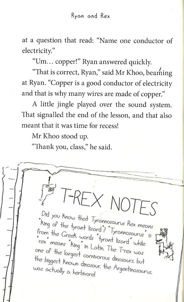 Ryan has just returned to Singapore after years abroad in the US. Feeling alone and out of place - and an easy target for the school bully - Ryan hates school... until he meets Mr Khoo, the eccentric science teacher. Mr Khoo brings a dinosaur hand puppet Rex to school, and Ryan soon discovers that Rex is not just an ordinary toy. Rex teleports Ryan back to the past, on a mission to find a missing bone.