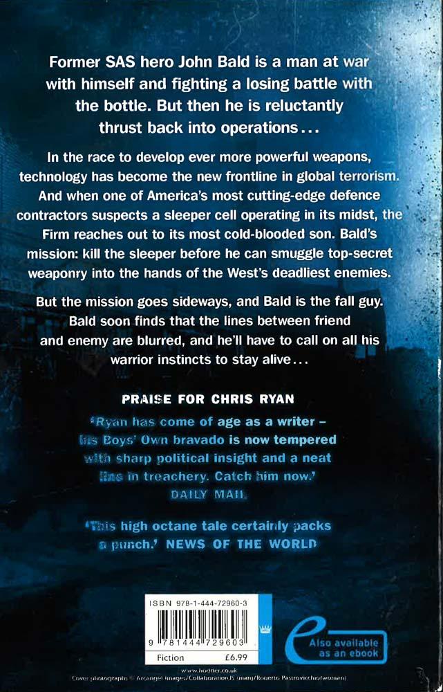 The second book in the Chris Ryan Extreme series. Former SAS hero John Bald is a man at war with himself and fighting a losing battle with the bottle. But then he is reluctantly thrust back into battle...In the race to develop ever more powerful weapons, technology has become the new frontline in global terrorism. And when one of America's most cutting-edge defence contractors suspects a sleeper cell operating in its midst, the Firm reaches out to its most cold-blooded son. Bald's mission: kill the sleeper before they can smuggle top-secret weaponry into the hands of the West's deadliest enemies.But the mission goes sideways, and Bald is the fall guy. Now he must pursue the sleeper from the ghettos of Florida to the war-torn streets of Tripoli, in a relentless hunt for the technology and the truth. Shadowed every step of the way by a ruthless CIA hitman, Bald soon finds that the lines between friend and enemy are blurred, and he'll have to call on all his warrior instincts to stay alive...The Chris Ryan Extreme books take you even further into the heart of the mission with even more extreme action, more extreme language and more extreme pace. Like Call of Duty or Medal of Honor, you'll feel part of the team. Chris Ryan Extreme: Night Strike has already been published as four separate shorter missions on ebook.