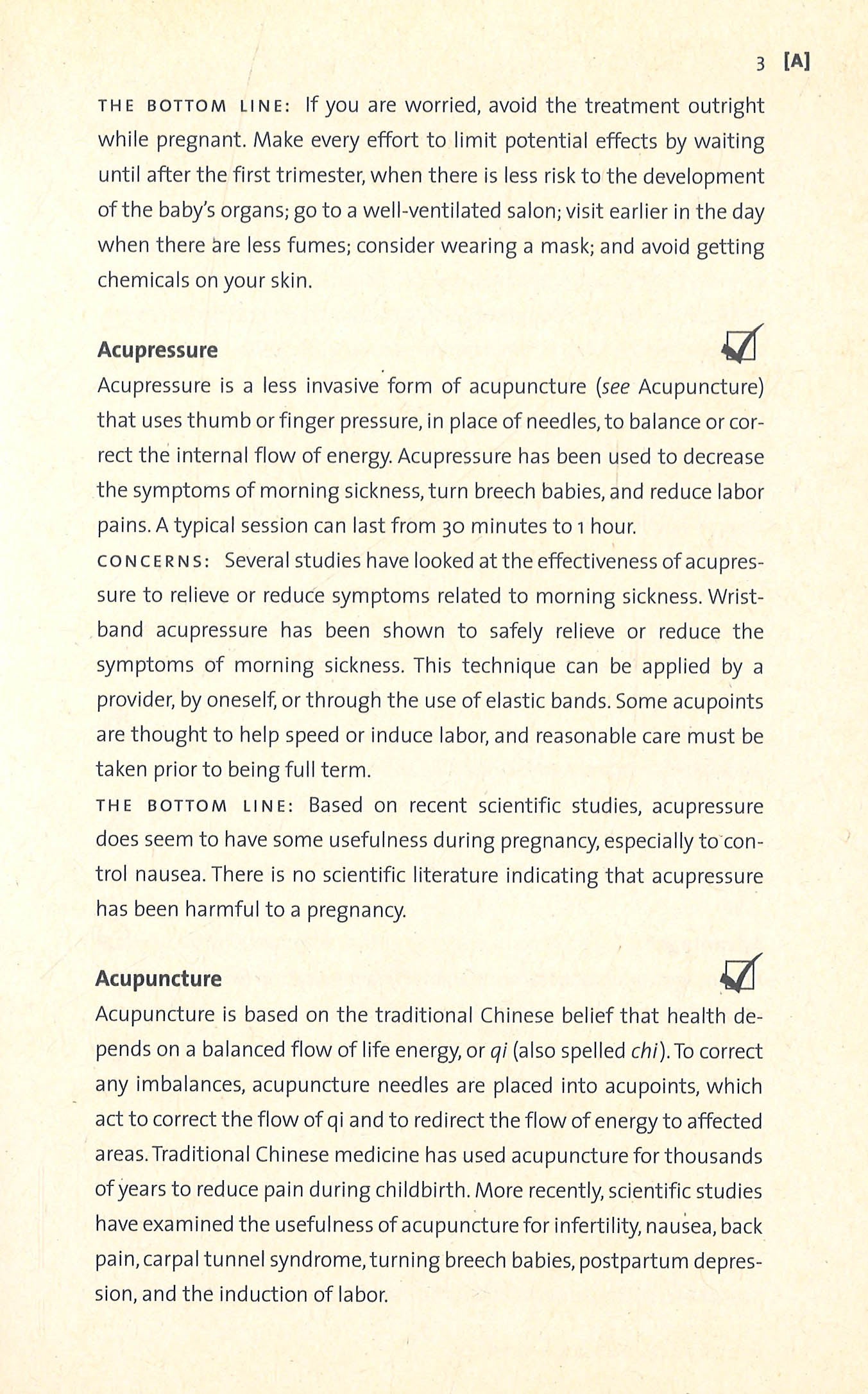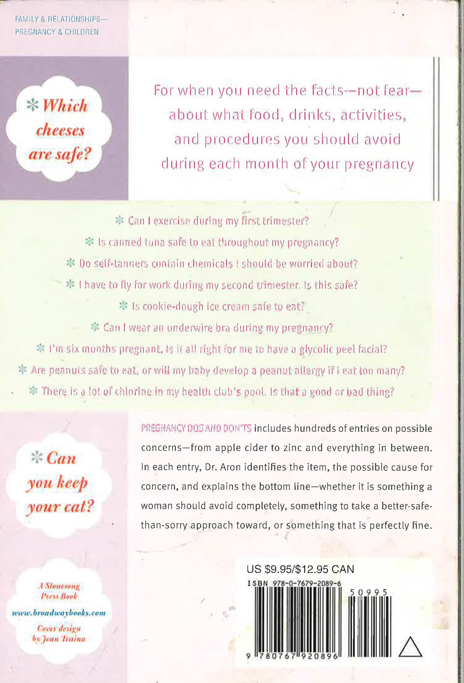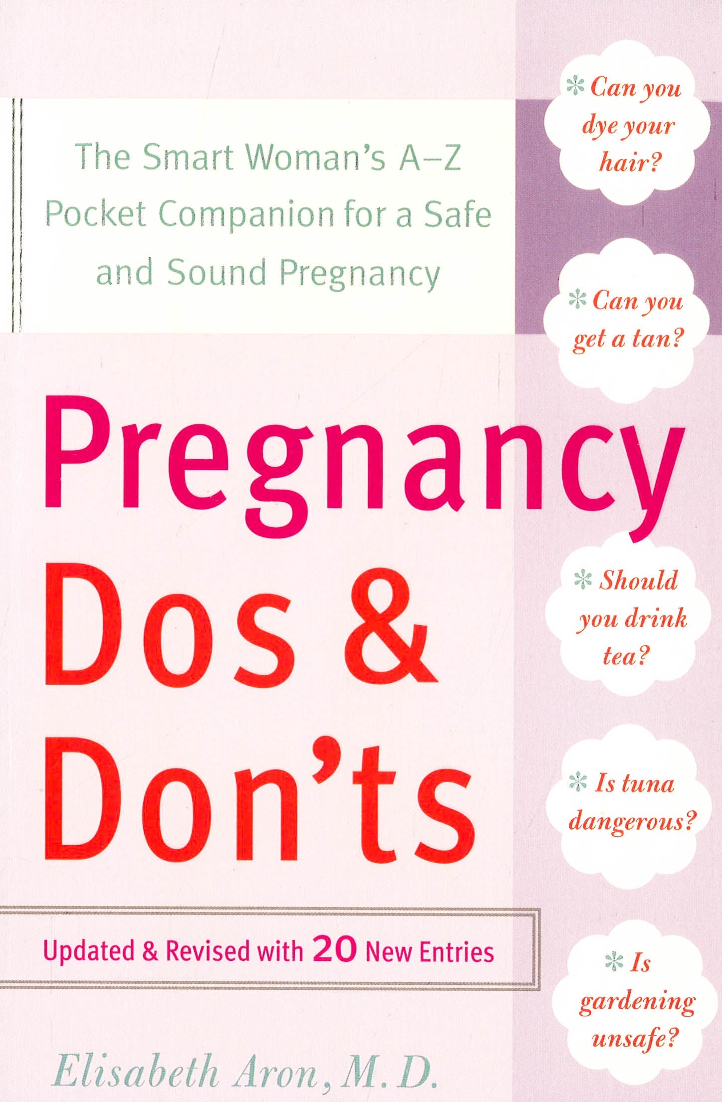 For when you need the facts???not fear???about what food, drinks, activities, and procedures you should avoid during each month of your pregnancy.Over the years, Dr. Elisabeth Aron has soothed the worries of many soon-to-be moms who have come to her with questions such as:??? Can I exercise during my first trimester???? Is canned tuna safe to eat throughout my pregnancy???? Do self-tanners contain chemicals I should be worried about???? I have to fly for work during my second trimester. Is this safe???? Is cookie-dough ice cream safe to eat???? Can I wear an underwire bra during my pregnancy???? I???m six months pregnant. Is it alright for me to have a glycolic peel facial???? Are peanuts safe to eat or will my baby develop a peanut allergy if I eat too many???? There is a lot of chlorine in my health club???s pool. Is that a good or bad thing?Pregnancy Do's and Don'ts includes hundreds of entries on possible concerns???from ar concern, and explains the bottom line???whether it is something a woman should avoid completely, something to take a better-safe-than-sorry approach toward, or something that is perfect