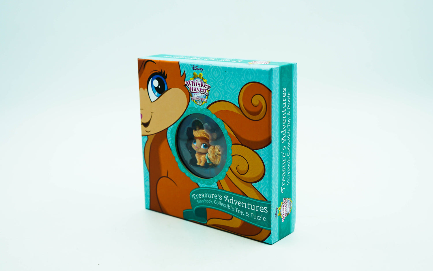 It's all paws on deck as the Palace Pets and Critterzens prepare for the Glitter Ball! At the event, Ms. Featherbon will launch splendificent Glitterworks to light up the sky using her magical Glitterbits. But when a magic-loving puppy swipes the Glitterbits, it's up to Treasure to get them back! This deluxe box features a storybook with five brand-new tales about Treasure, a collectible toy, fun play scenes, and a punch-out boat. Following the action-packed stories, place the mini Treasure toy inside of the boat and have her set sail for adventure!