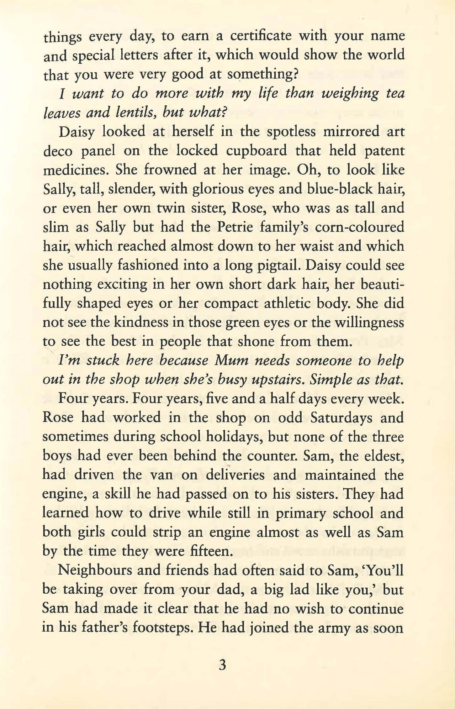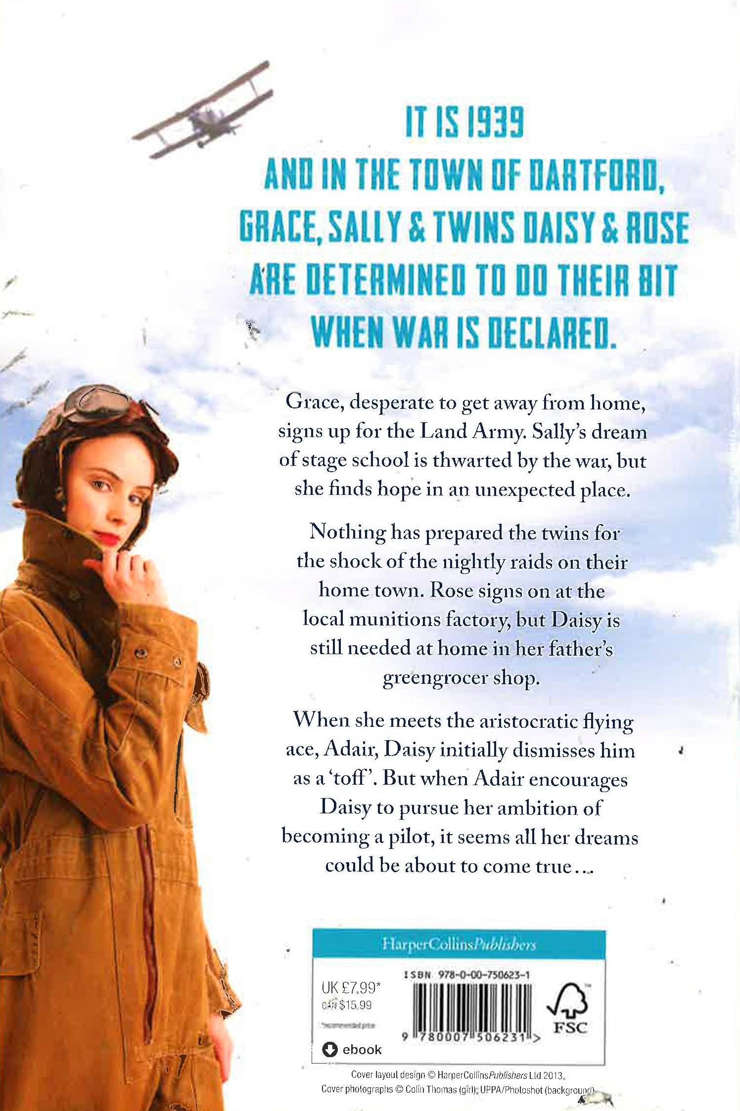 It is 1939 and in the town of Dartford, Grace, Sally and twins Daisy and Rose, are determined to do their bit when war is declared. Grace, desperate to get away from her sad home life, signs up for the Land Army. Sally's dream of stage school is thwarted by the war, but she finds hope in an unexpected place. For the twins, nothing has prepared them for the shock of the blitz and the nightly raids on their hometown. Rose signs on at the local munitions factory, but with her brothers away fighting, Daisy is needed at home in her father's greengrocer shop. When she unwittingly trespasses on wealthy estate and meets the aristocratic flying ace, Adair, Daisy initially dismisses him as a 'toff'. But they become friends and Adair encourages Daisy to indulge her passion for aeroplanes. Could Daisy's dream of being a pilot be closer than she thinks? And in these uncertain times, a girl would have to be crazy to fall in love, wouldn't she? .