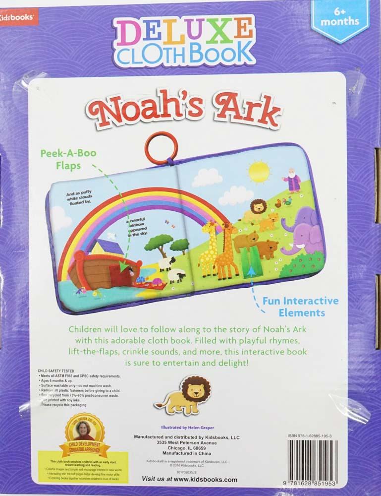 Children will love to follow along to the story of Noah s Ark with this beautiful Deluxe Cloth Book filled with playful rhymes.