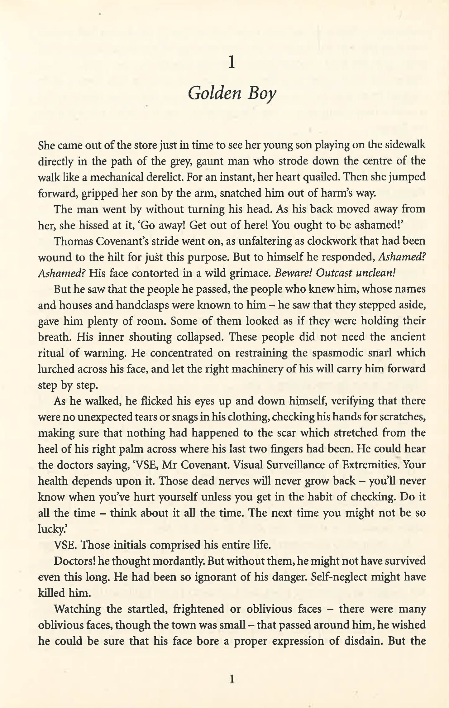 'Comparable to Tolkien at his best' WASHINGTON POST Instantly recognised as a modern fantasy classic, Stephen Donaldson's uniquely imaginative and complex THE CHRONICLES OF THOMAS COVENANT, THE UNBELIEVER became a bestselling literary phenomenon that transformed the genre. Lying unconscious after an accident, writer Thomas Covenant awakes in the Land - a strange, beautiful world locked in constant conflict between good and evil. But Covenant, too, has been transformed: weak, angry, and alone in our world, he now holds powers beyond imagining and is greeted as a saviour. Can this man truly become the hero the Land requires?