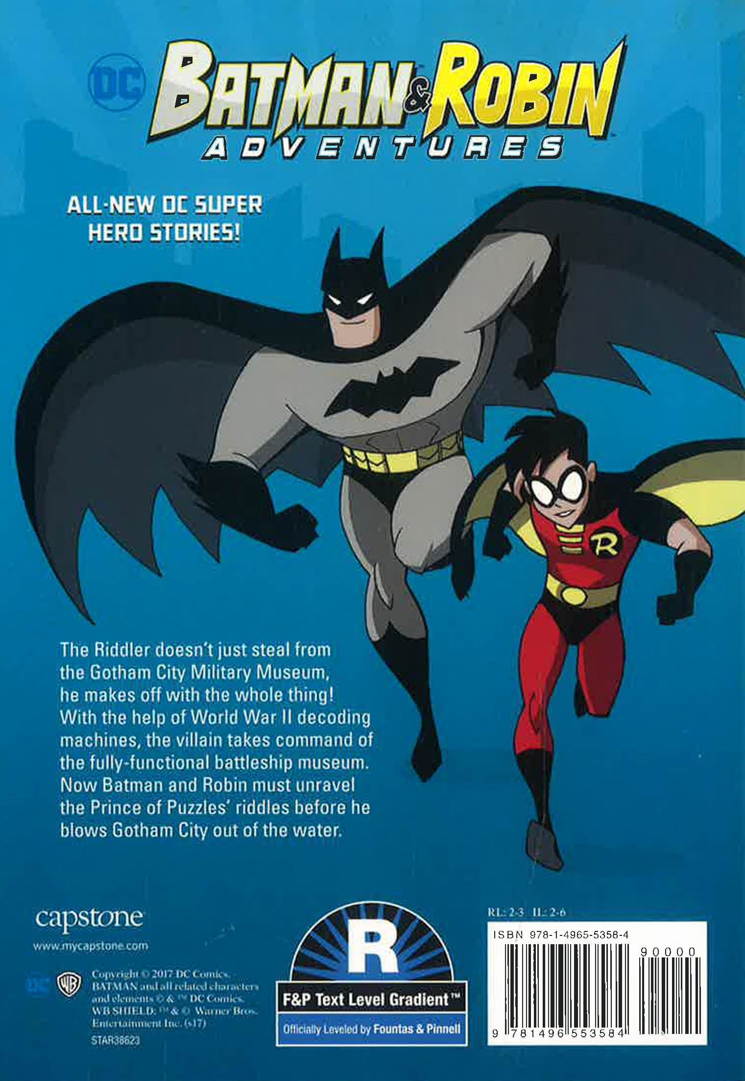When the Riddler escapes from Arkham Asylum, the Dynamic Duo discover he has a museum in his sites. But the Riddler's riddles reveal he doesn't just steal from the museum, he actually makes off with the whole thing! With the help of World War II-era decoding machines, the Riddler takes command of the Gotham City Military Museum--a fully-functional battleship! Now it's up to Batman and Robin spoil his plans before he blows Wayne Manor, and the rest of Gotham City, out of the water.