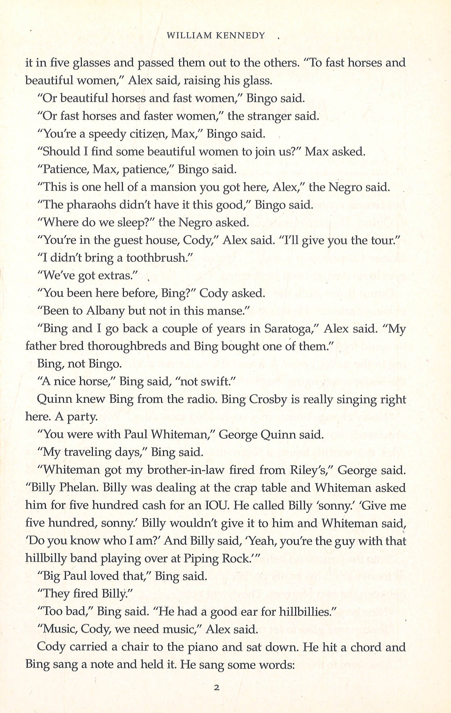 Kennedy masterfully gathers together an unlikely cast of vivid characters in a breathtaking adventure full of music, mysticism, and murder--a homeless black alcoholic, a radical Catholic priest, a senile parent, a terminally ill jazz legend, the imperious mayor of Albany, Bing Crosby, Hemingway, Castro, and a ragtag ensemble of radicals, prostitutes, provocateurs, and underworld heavies. This is an unforgettably riotous story of revolution, romance, and redemption, set against the landscape of the civil rights movement as it challenges the legendary and vengeful Albany political machine.