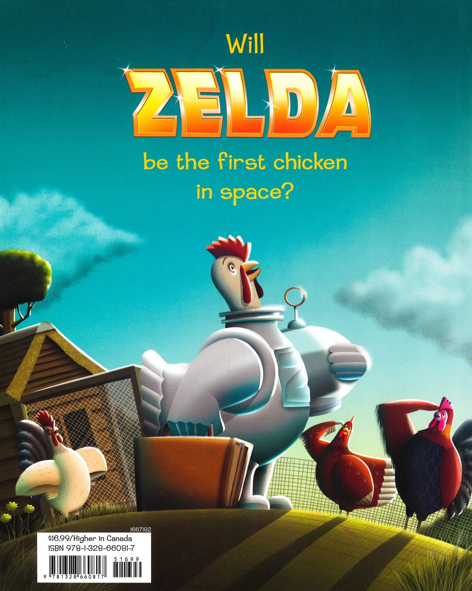 Zelda has big plans--she wants to be the first chicken in space. She leaves nothing to chance as she builds her spaceship, plans her experiments, and packs for the journey. All she needs now is a little help from her friends, and if they won't step up, Zelda will just have to manage on her own! Eye-popping art and a story of perseverance and ingenuity prove that for a plucky hen, the sky is never the limit. This modern twist on the traditional The Little Red Hen story features an endearing and resourceful chicken determined to fulfill her dream.
