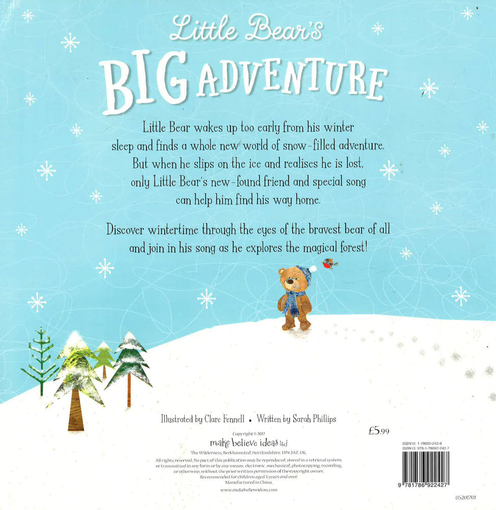 Brave Little Bear has woken up early one morning and has decided to go outside and explore. There he finds a magical world covered in glistening, white snow. Little Bear is a little scared, but reminds himself that he is a BRAVE bear and decides to go exploring. He uses his favourite ROUND AND ROUND THE GARDEN rhyme to encourage himself. Simple text and Claire Fennell s beautiful illustrations combine to create the exciting world of Little Bear. Young children will love reading about Bear's wintery adventures.