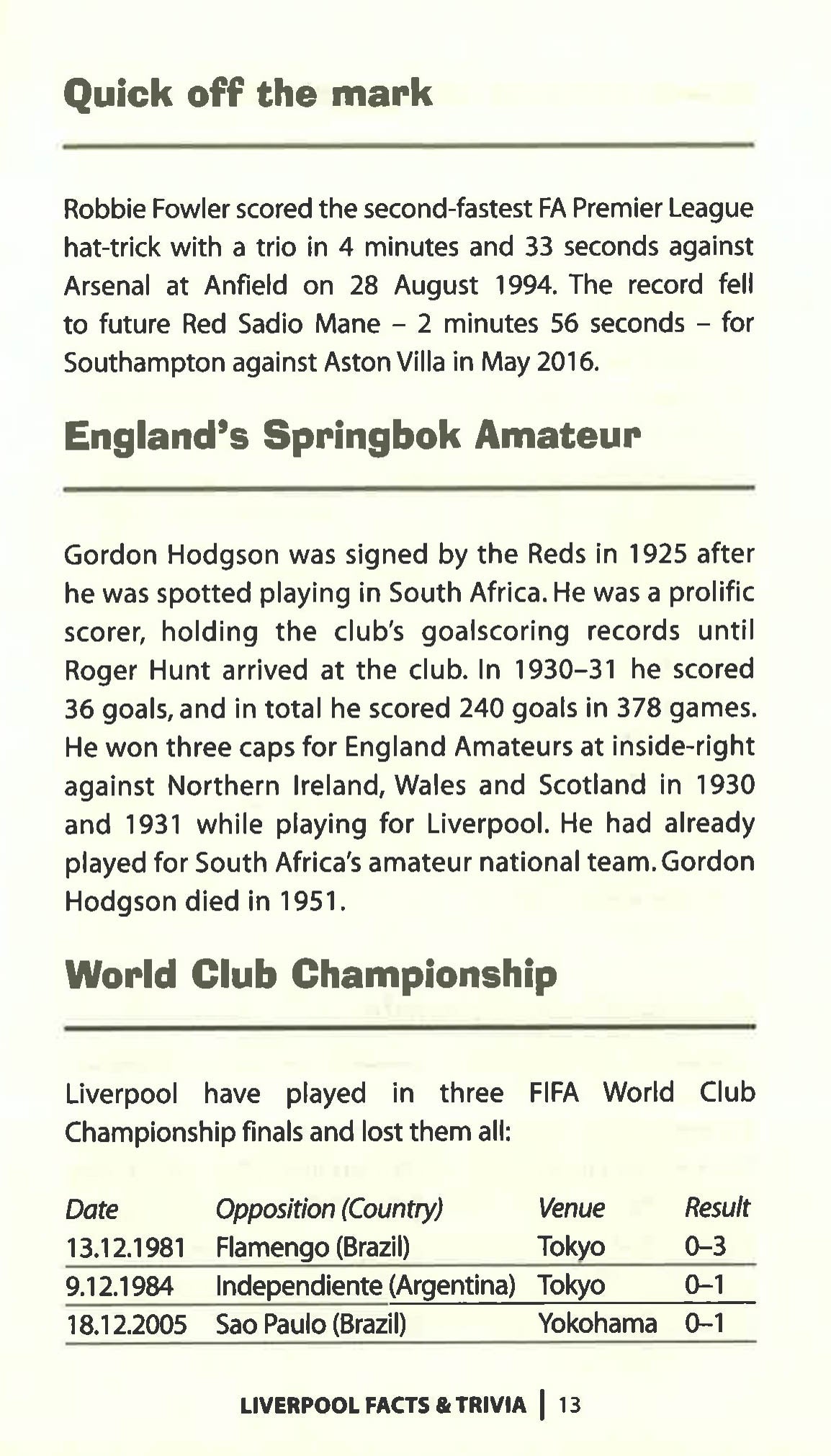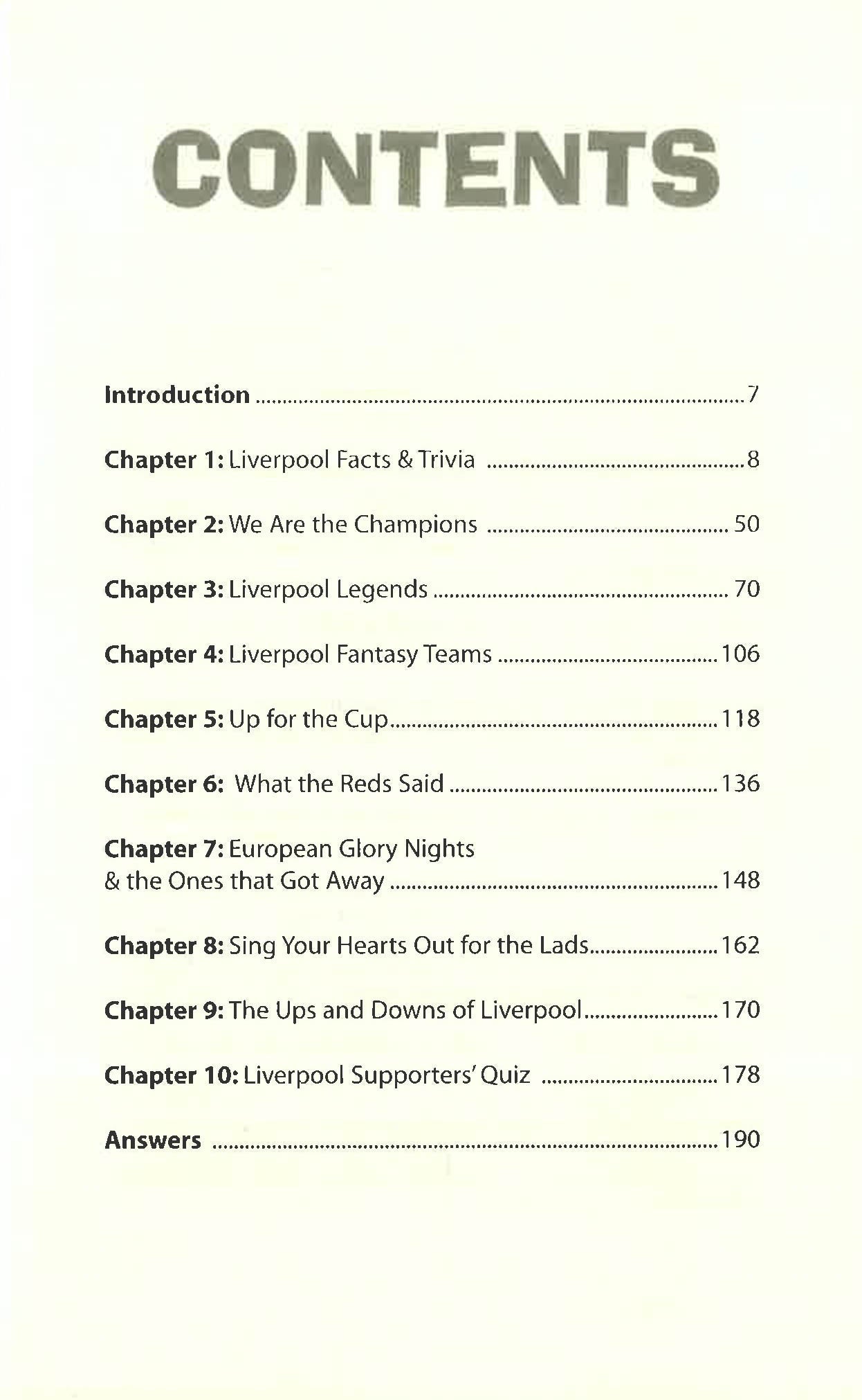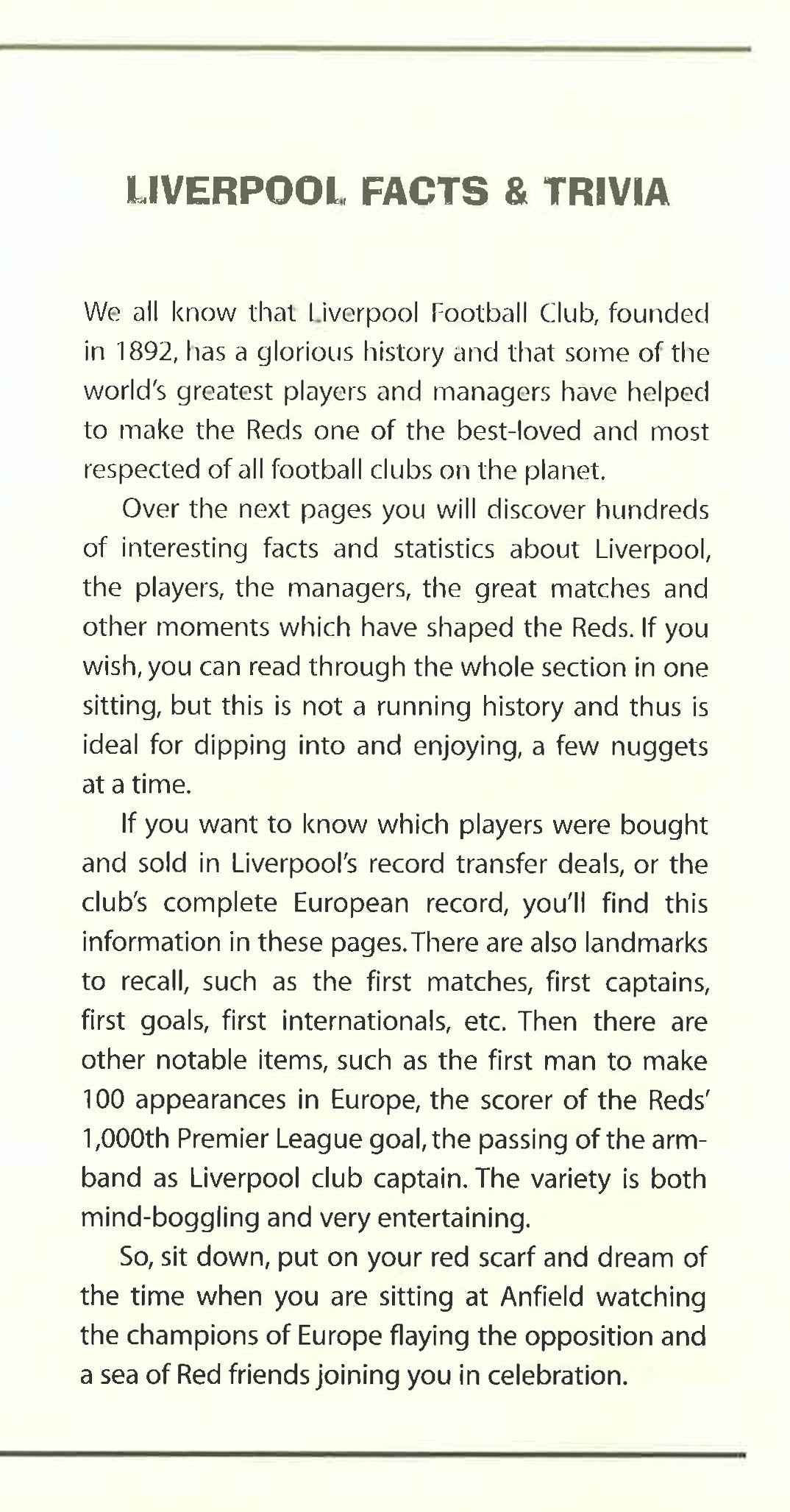 Liverpool fans may be demanding, but they have enjoyed countless memorable nights watching the Reds, and The Liverpool Supporter's Book will bring back the glory days in so many ways. This book combines history, biography, statistics, quotes, and factoids, making it perfect for a fan to dip into and bring back memories of glorious days and nights following the Reds. Containing a Foreword by the legendary Ian Rush and filled with a cornucopia of facts and stats, match reports, biographies, histories as well as fun and games in the shape of puzzles and crosswords, songs and chants, this is the perfect gift for any Liverpool fan.
