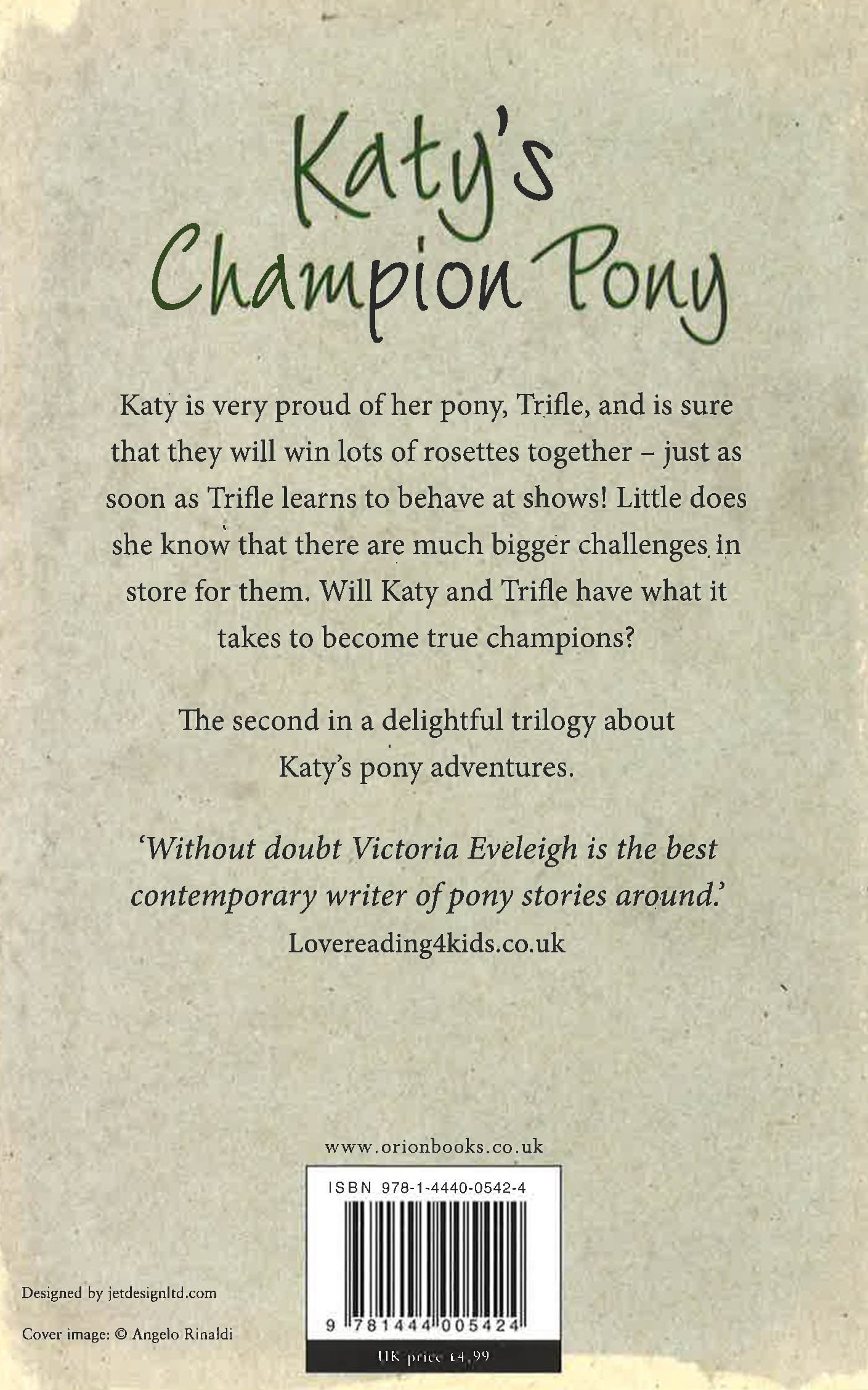 Katy is very proud of her pony, Trifle, and is sure that they will win lots of rosettes together - just as soon as Trifle learns to behave at shows! Little does she know that there are much bigger challenges in store for them. Will Katy and Trifle have what it takes to become true champions?