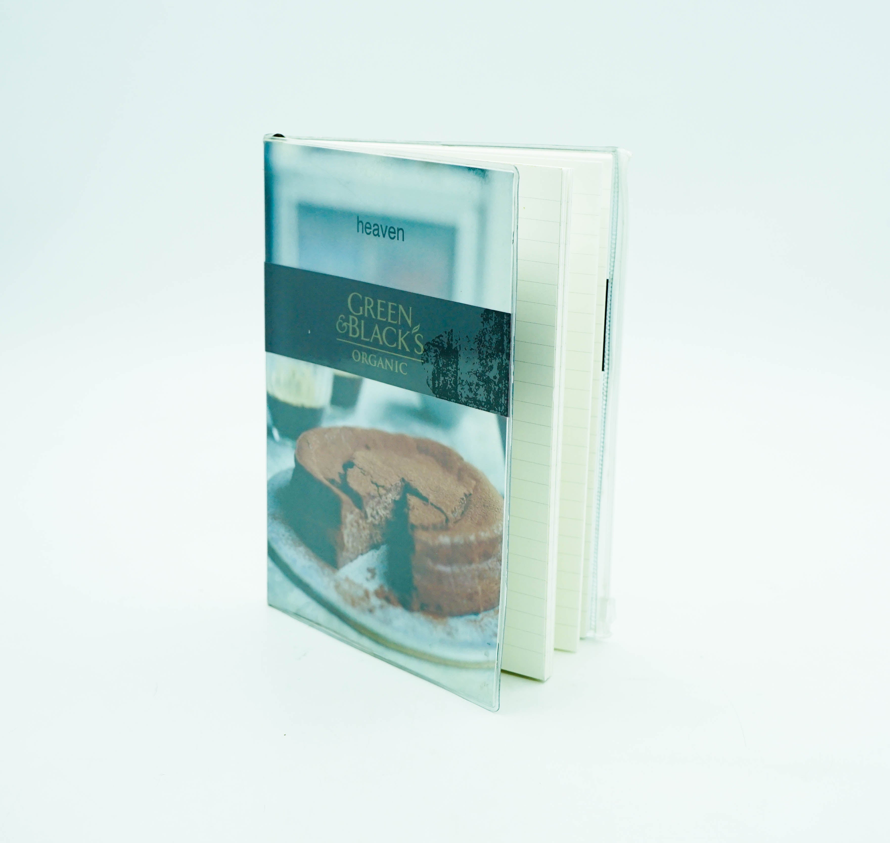 From our Green & Black's Chocolate series, this large 96-page notebook with 'bon voyage' on the front is perfect for all your notes, lists and dreams. The lined paper is lovely and thick, giving a luxurious feel as you turn the pages with a pretty ribbon market that tops it all off. The clear protective sleeve keeps your notes protected and looking good, whilst the zip lock pocket on the back keeps you...
