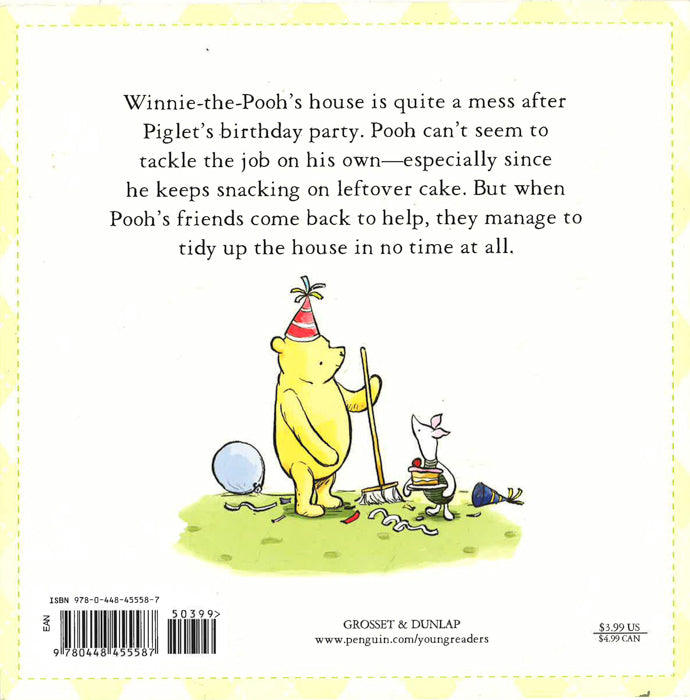 Pooh and all his friends had a big party, and now Pooh's house is a mess! At first, Pooh is overwhelmed by all the work he has to do (and he keeps getting distracted by all the leftover snacks), but things get easier when all his friends pitch in.