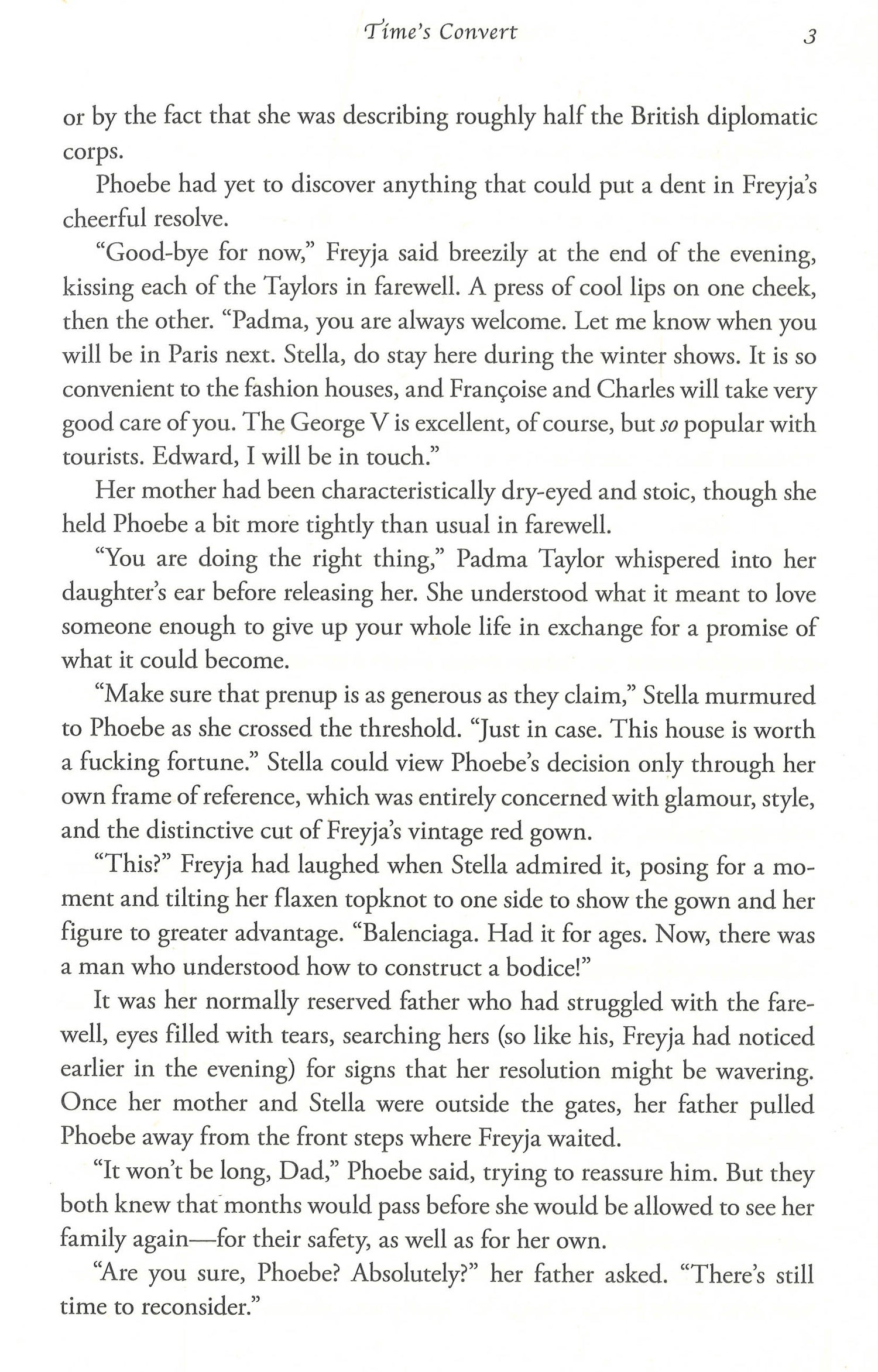 "From the #1 New York Times bestselling author of A Discovery of Witches, a novel about what it takes to become a vampire. Set in contemporary Paris and London, and the American colonies during the upheaval and unrest that exploded into the Revolutionary War, a sweeping story that braids together the past and present. On the battlefields of the American Revolution, Matthew de Clermont meets Marcus MacNeil, a young surgeon from Massachusetts, during a moment of political awakening when it seems that the world is on the brink of a brighter future. When Matthew offers him a chance at immortality and a new life, free from the restraints of his puritanical upbringing, Marcus seizes the opportunity to become a vampire. But his transformation is not an easy one and the ancient traditions and responsibilities of the de Clermont family clash with Marcus's deeply-held beliefs in liberty, equality, and brotherhood. Fast forward to contemporary London, where Marcus has fallen for Phoebe Taylor, a young employee at Sotheby's. She decides to become a vampire, too, and though the process at first seems uncomplicated, the couple discovers that the challenges facing a human who wishes to be a vampire are no less formidable in the modern world than they were in the 18th century. The shadows that Marcus believed he'd escaped centuries ago may return to haunt them both--forever. A passionate love story and a fascinating exploration of the power of tradition and the possibilities for change, Time's Convert will delight fans of the All Souls trilogy and all readers of magic, the supernatural, and romance"--
