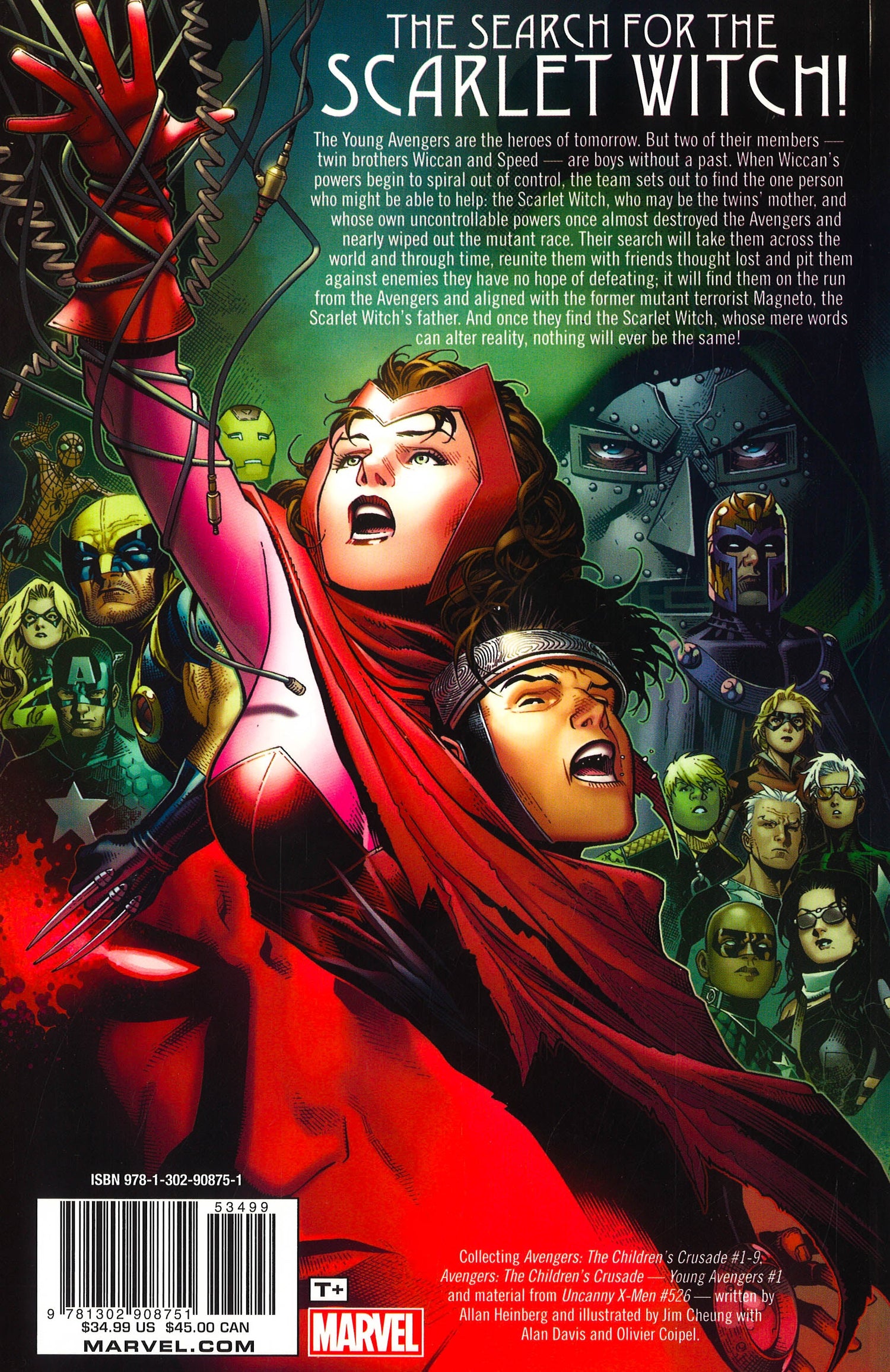 Twin brothers Wiccan and Speed of the Young Avengers are boys without a past. When Wiccan's powers spiral out of control, the team sets out to find the one person who might be able to help: the Scarlet Witch, who may be the twins' mother, and whose own uncontrollable powers once almost destroyed the Avengers and nearly wiped out the mutant race. The Young Avengers' search will take them across the world and through time, reunite them with friends thought lost and pit them against deadly enemies; it will find them on the run from the Avengers and aligned with the former mutant terrorist Magneto, the Scarlet Witch's father. And once they find the Scarlet Witch, nothing will ever be the same! COLLECTING: AVENGERS: THE CHILDREN'S CRUSADE 1-9, AVENGERS: THE CHILDREN'S CRUSADE - YOUNG AVENGERS 1, UNCANNY X-MEN 526 (B STORY)
