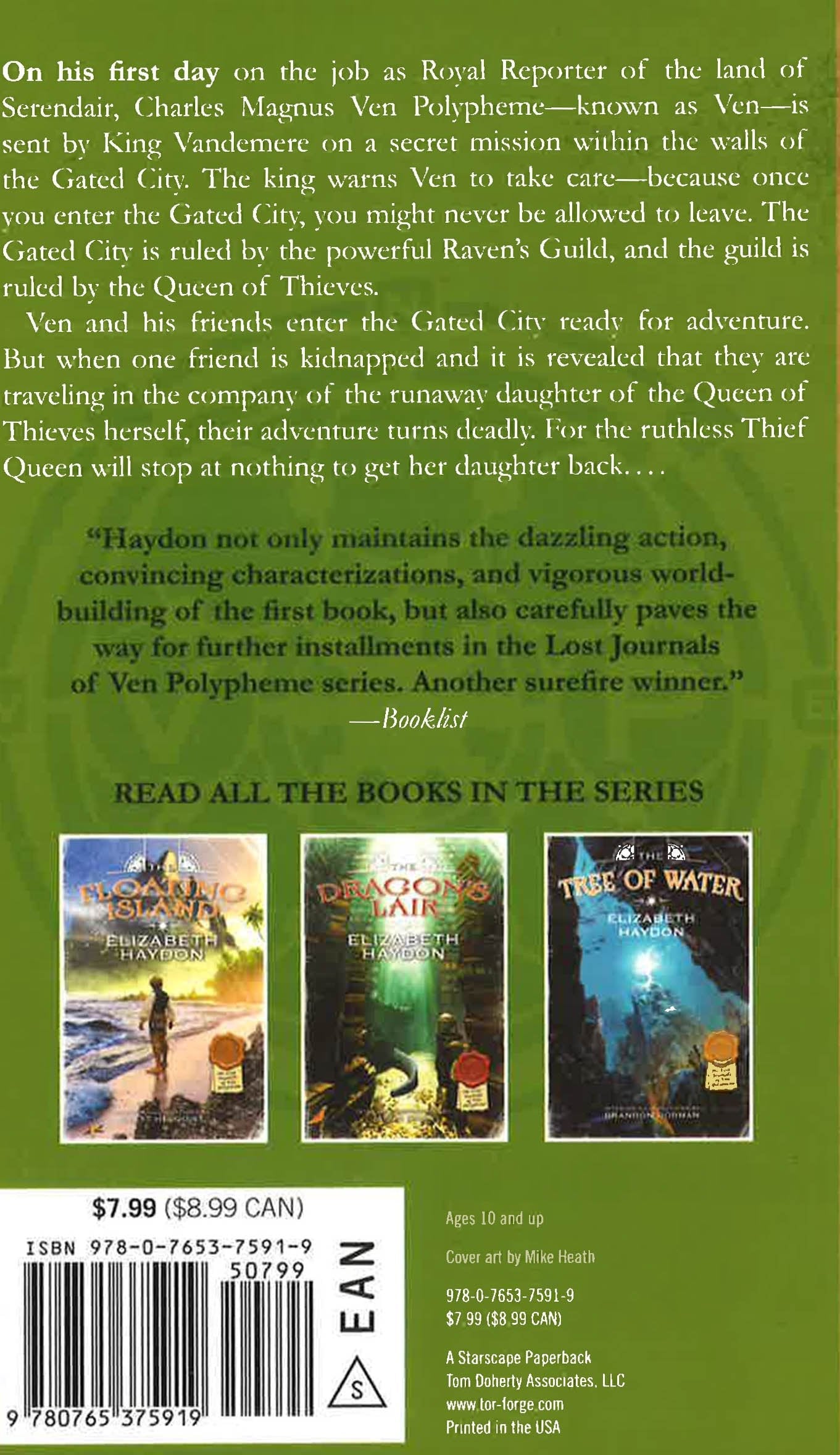 On his first day on the job as Royal Reporter of the land of Serendair, Charles Magnus Ven Polypheme - known as Ven-is sent by King Vandemere on a secret mission within the walls of the Gated City. The king warns Ven to take care - because once you enter the Gated City, you might never be allowed to leave. The Gated City is ruled by the powerful Raven's Guild, and the guild is ruled by the Queen of Thieves. Ven and his friends enter the Gated City ready for adventure. But when one friend is kidnapped and it is revealed that they are traveling in the company of the runaway daughter of the Queen of Thieves herself, their adventure turns deadly. For the ruthless Thief Queen will stop at nothing to get her daughter back . . .