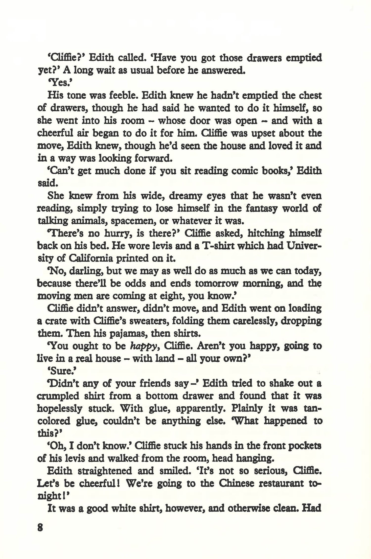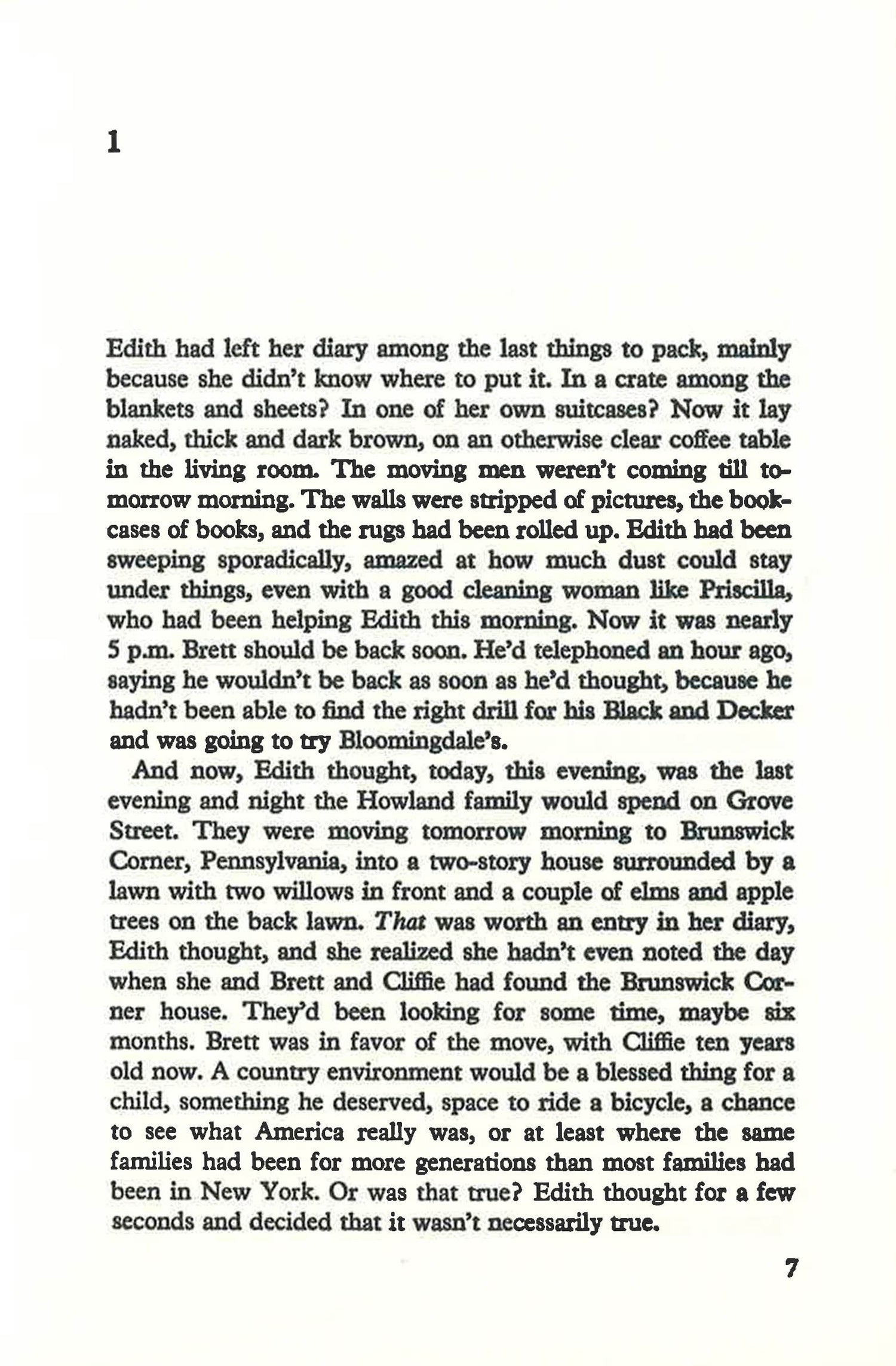 As Edith Howland's life becomes harsh, her diary entries only become brighter and brighter. She invents a happy life. As she knits for imaginary grandchildren, the real world recedes. Her descent into madness is subtle, appalling, and entirely believable.
