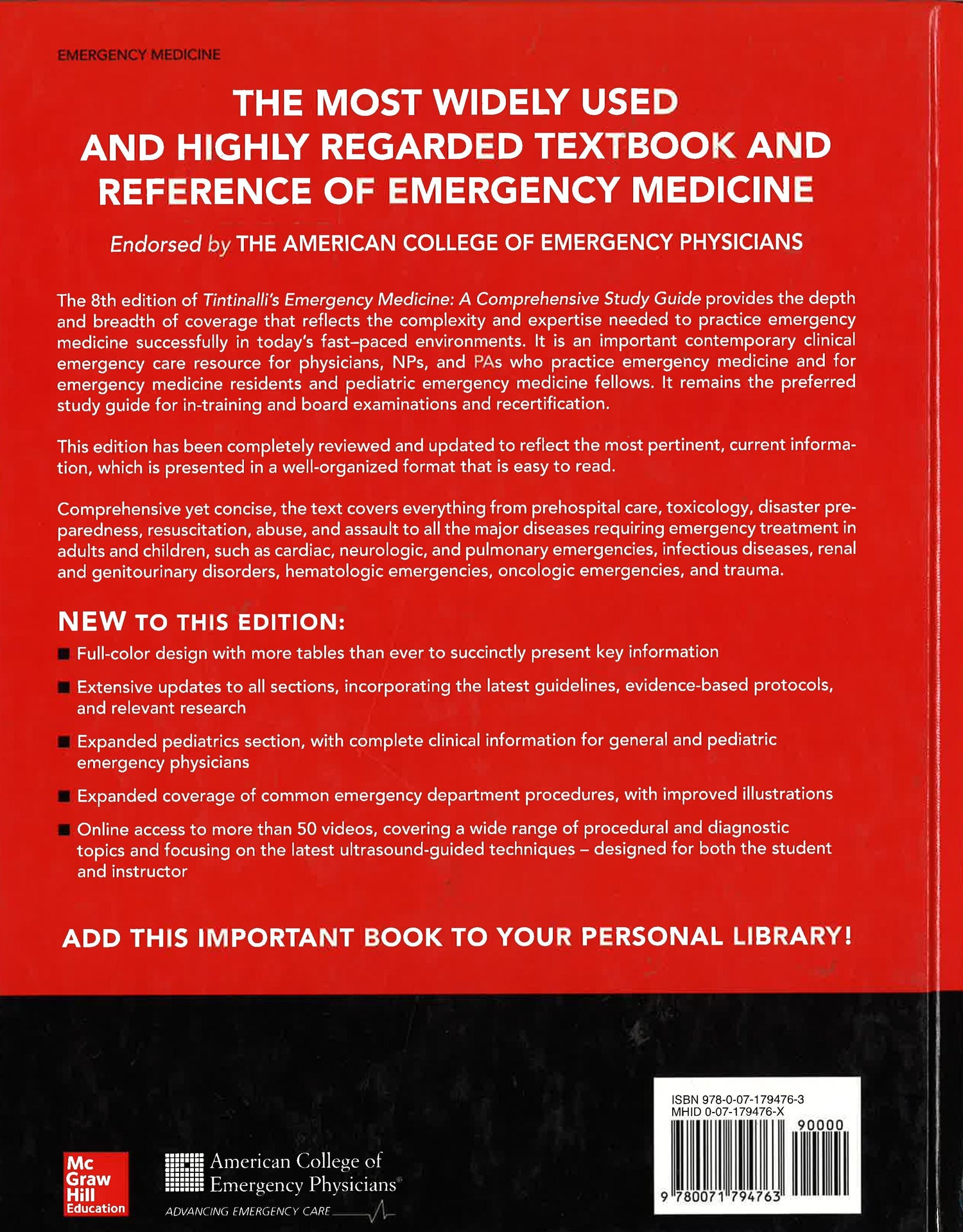 The most widely used and highly regarded textbook and reference of emergency medicine -- Endorsed by the American College of Emergency Physicians
