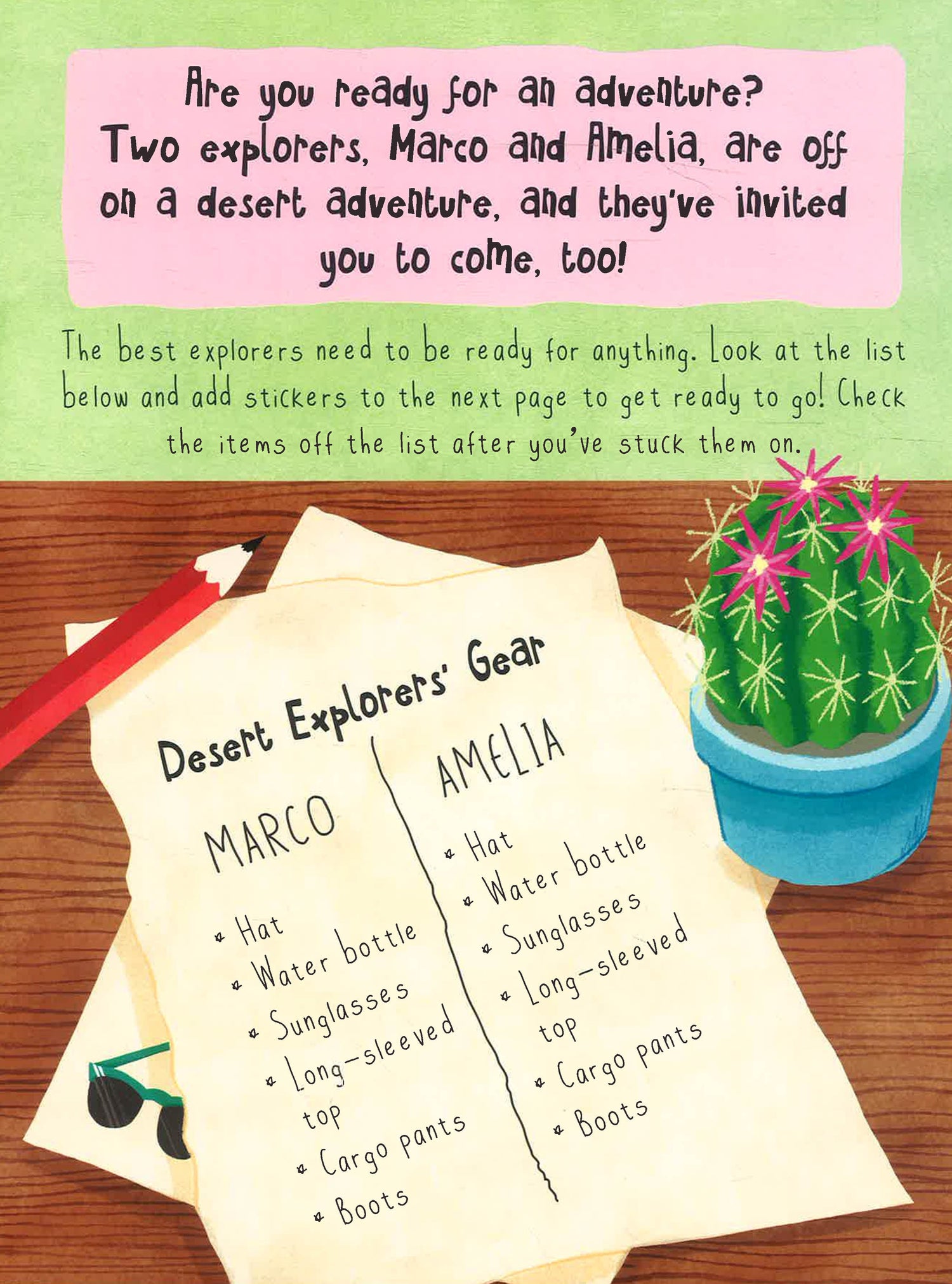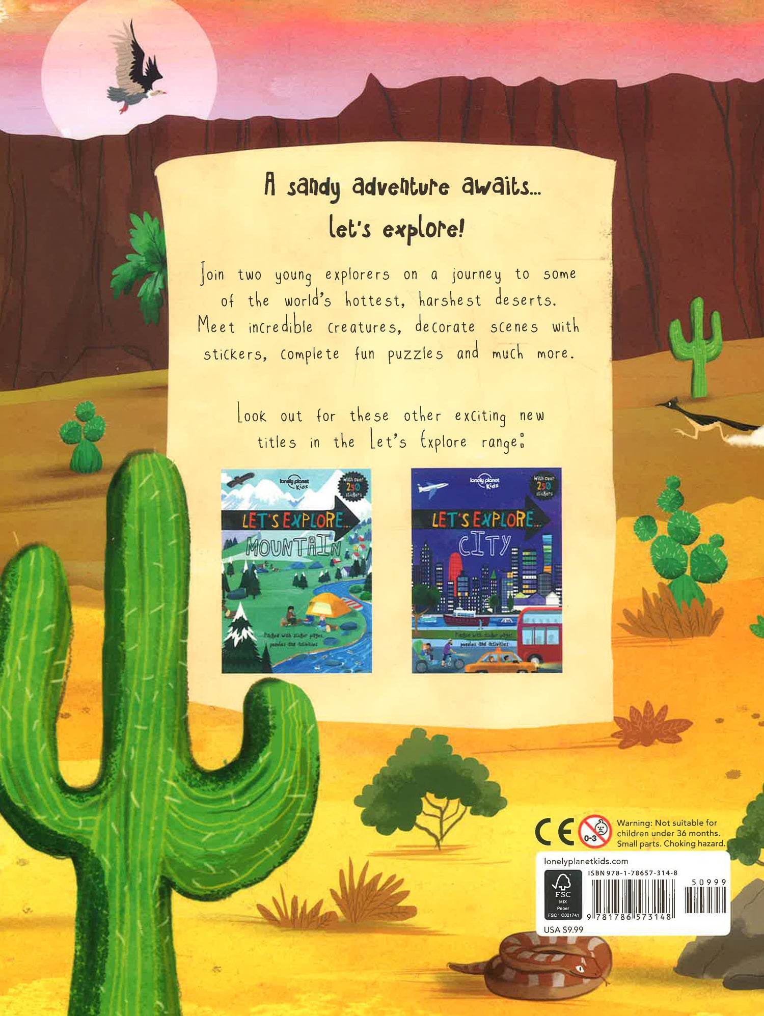 Marco and Amelia are on a trip through the world's dry and dusty deserts. This sticker activity book is packed with puzzles to complete, stickers to add, pages to colour and loads of fascinating facts. Ride camels to an Arabian oasis, discover dino fossils, camp out under the stars, take a trip down the River Nile and lots more. Gorgeously illustrated and featuring the Lonely Planet Kids explorers - Marco and Amelia - this is the perfect gift for any curious child aged 5+. A desert adventure awaits... let's explore!