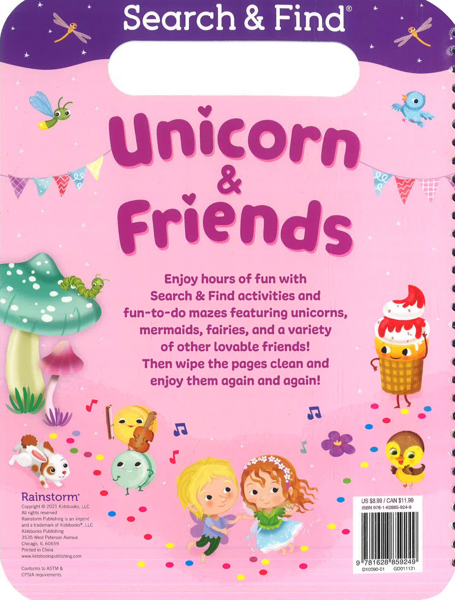 Little ones will enjoy hours of fun with Search and Find activities and mazes in this My First Wipe-Clean book!Unicorns, mermaids, fairies, and a variety of other lovable friends encourage creativity and play. And with wipe-and-erase pages, the book can be enjoyed time and time again for never-ending fun!