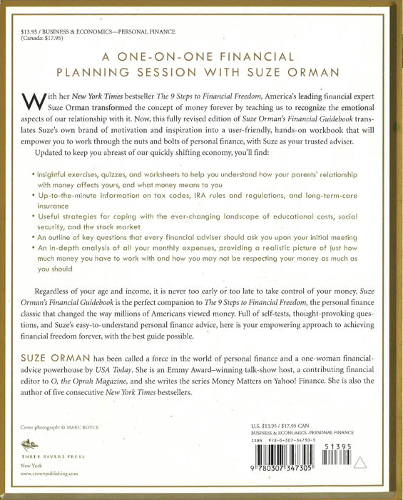 A One-on-One Financial Planning Session with Suze Orman With her New York Times bestseller The 9 Steps to Financial Freedom, America's leading financial expert Suze Orman transformed the concept of money forever by teaching us to recognize the emotional aspects of our relationship with it. Now, this fully revised edition of Suze Orman's Financial Guidebook translates Suze's own brand of motivation and inspiration into a user-friendly, hands-on workbook that will empower you to work through the nuts and bolts of personal finance, with Suze as your trusted adviser. Updated to keep you abreast of our quickly shifting economy, you'll find: - Insightful exercises, quizzes, and worksheets to help you understand how your parents' relationship with money affects yours, and what money means to you - Up-to-the-minute information on tax codes, IRA rules and regulations, and long-term-care insurance - Useful strategies for coping with the ever-changing landscape of educational costs, social security, and the stock market - An outline of key questions that every financial adviser should ask you upon your initial meeting - An in-depth analysis of all your monthly expenses, providing a realistic picture of just how much money you have to work with and how you may not be respecting your money as much as you should Regardless of your age and income, it is never too early or too late to take control of your money. Suze Orman's Financial Guidebook is the perfect companion to The 9 Steps to Financial Freedom, the personal finance classic that changed the way millions of Americans viewed money. Full of self-tests, thought-provoking questions, and Suze's easy-to-understand personal finance advice, here is your empowering approach to achieving financial freedom forever, with the best guide possible.