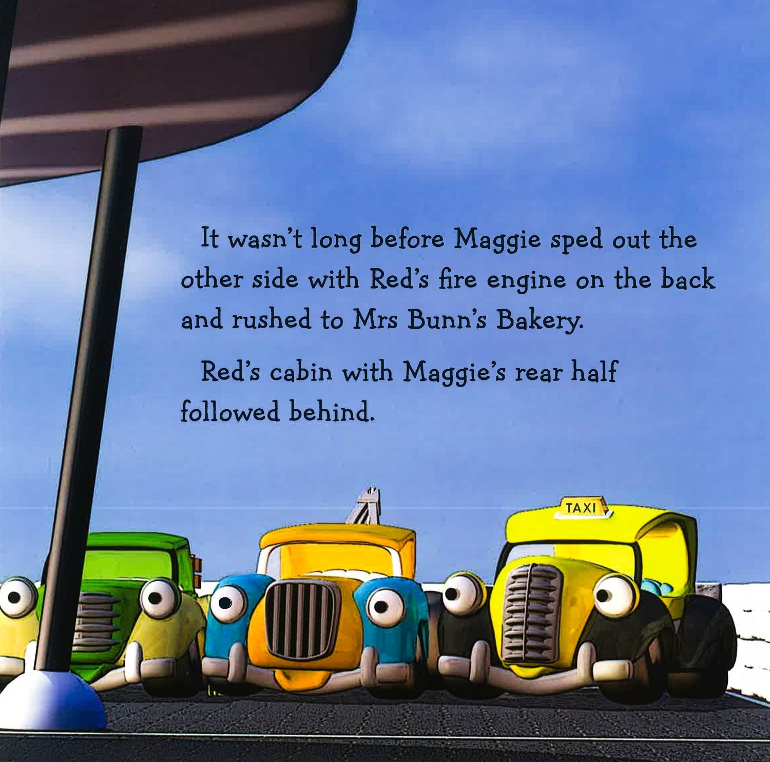 To understand the concept of the Magic Car Wash, think Transformers meets Cars! In the town of Tyre Flats, Kit the mechanic has a magical car wash, where vehicles mix and match fronts and ends to become superheroes. It's Red's birthday and he is now old enough to attend his first fire. But when Mrs Bunn's bakery is threatened by fire, it's Maggie the racing car who helps Red. Will Red ever be brave enough to face a fire on his own?