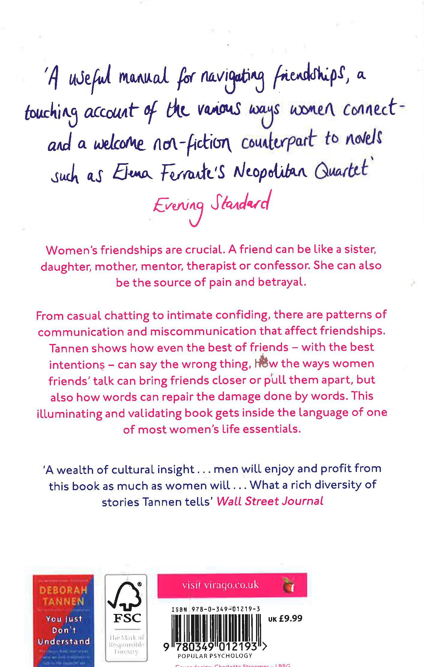 Deborah Tannen's bestselling You Just Don't Understand: Conversations Between Women and Men made us aware of the deep and subtle meanings behind the words we say. She has since explored the way we talk at work, in arguments, to our mothers and our daughters. Now she turns to that most intense, precious and potential minefield: women's friendships. Best friend, old friend, good friend, new friend, neighbour, fellow mother at the school gate, workplace confidante: women's friendships are crucial. A friend can be like a sister, daughter, mother, mentor, therapist or confessor. She can also be the source of pain and betrayal. From casual chatting to intimate confiding, from talking about problems to sharing funny stories, there are patterns of communication and miscommunication that affect friendships. Tannen shows how even the best of friends - with the best intentions - can say the wrong thing, how the ways women friends talk can bring friends closer or pull them apart, but also how words can repair the damage done by words. She explains the power of women friends who show empathy and can just listen; how women use talk to connect - and to subtly compete; how fears of rejection can haunt friendships; how social media is reshaping relationships. Exploring what it means to be friends, helping us hear what we are really saying, understanding how we connect to other people; this illuminating and validating book gets inside the language of one of most women's life essentials - female friendships.