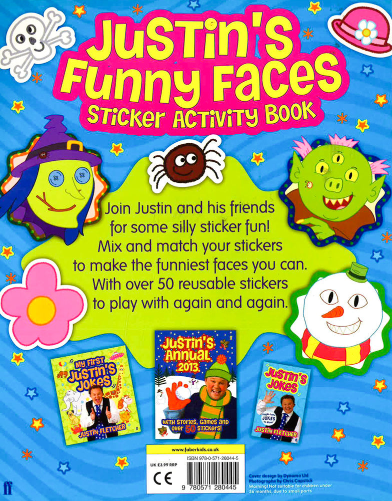 Kids will love making funny faces with Justin. Complete with two sheets of hilarious stickers, this is perfect for ages 3+.Kids will love making funny faces with Justin. Complete with two sheets of hilarious stickers, this is perfect for ages 3+.Since graduating from the Guildford School of Acting Justin has been working as an actor, children's television presenter and voice over artist for the last fifteen years. In 2008 Justin won a BAFTA for best Children's Television Presenter and was awarded an MBE for his services to Children's television and the charity sector. In November 2010 Something Special won the Bafta for best pre school programme and Justin won his second Bafta for best Children's Television Presenter. In February 2011 Something Special won Best Pre School programme at the Broadcast awards. His children's television credits include Justin's House, Tikkabilla, Fun Song Factory, Higgledy House, Something Special, Springwatch, Gigglebiz, Jollywobbles and Cbeebies presentation. Something Special won the Royal Television Society award for best early years programme for two years running and Cbeebies Springwatch has won a Bafta for best pre school programme.