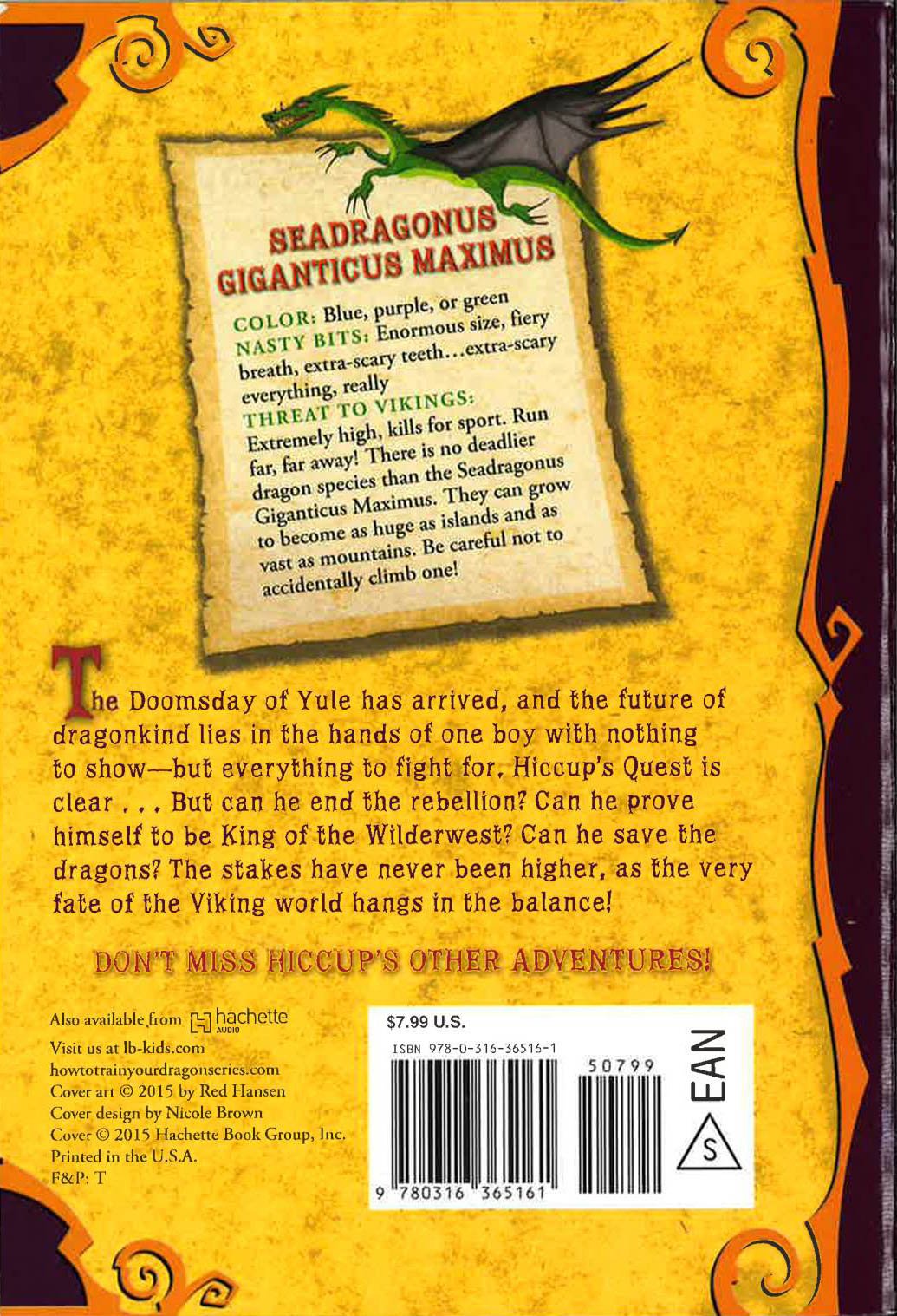 The Doomsday of Yule has arrived, and the future of dragonkind lies in the hands of one boy with nothing to show - but everything to fight for. Hiccup's Quest is clear . . . But can he end the rebellion? Can he prove himself to be King of the Wilderwest? Can he save the dragons? The stakes have never been higher, as the very fate of the Viking world hangs in the balance!