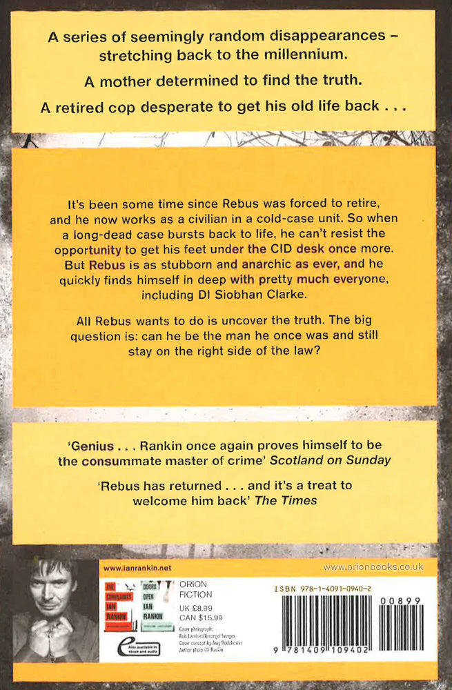 It's been some time since Rebus was forced to retire, and he now works as a civilian in a cold-case unit. So when a long-dead case bursts back to life, he can't resist the opportunity to get his feet under the CID desk once more. But Rebus is as stubborn and anarchic as ever, and he quickly finds himself in deep with pretty much everyone, including DI Siobhan Clarke.