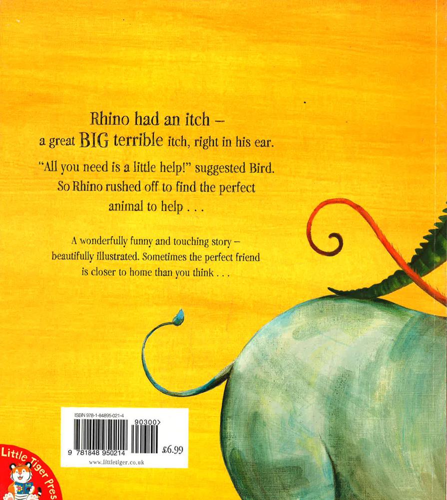 "All you need is a little help!" suggests Bird. So Rhino rushes off to find an animal big enough to scratch his great, big itch. But the animals are all too slimy, too silly, too prickly or just too scary! Can anyone help poor Rhino?