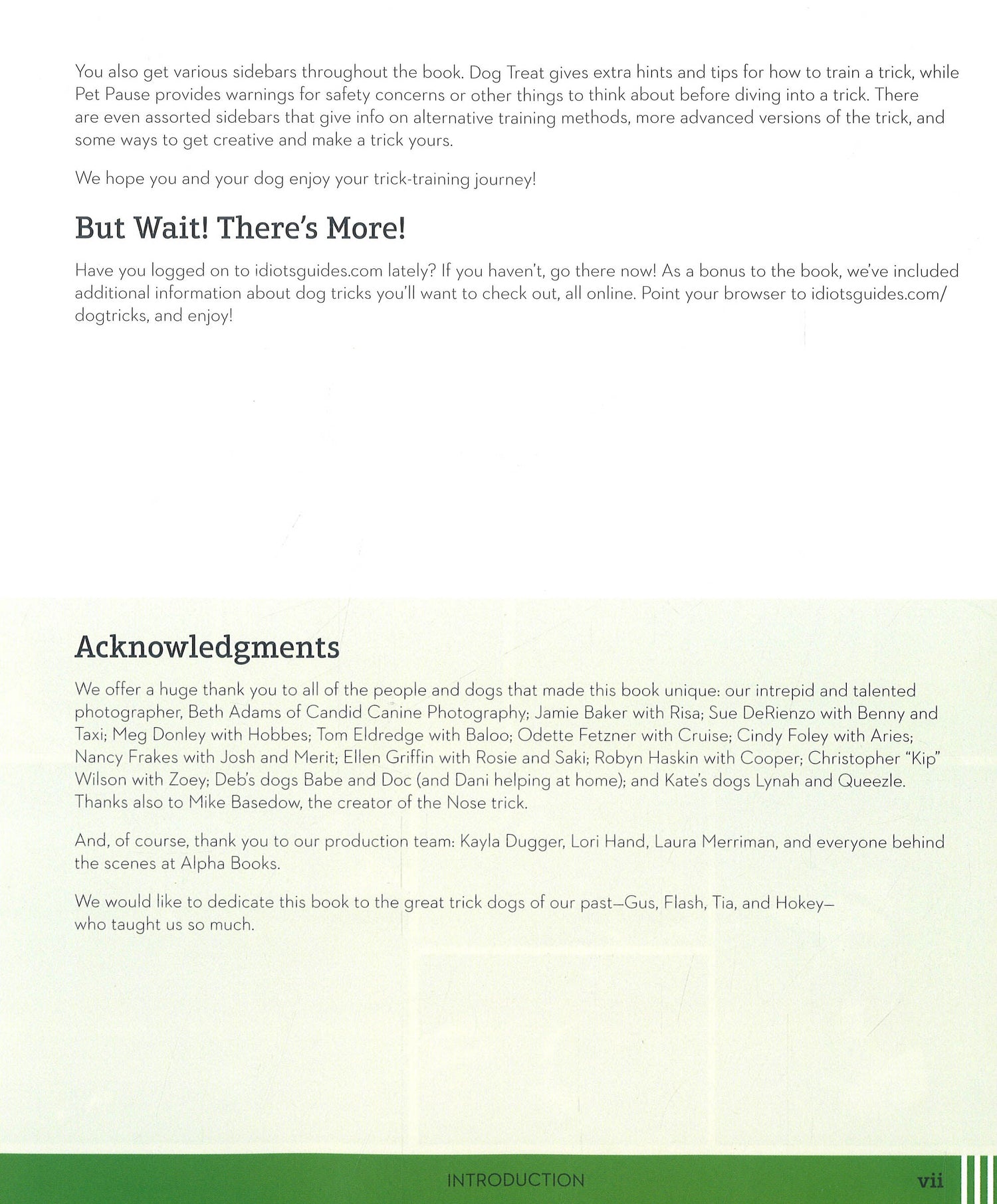 Dogs are such intelligent creatures and they love to be challenged with new things to learn, and to spend fun time with their families. People love to watch dogs doing funny, as well as useful tricks, such as playing basketball, picking up their own toys and putting down the toilet lid. Idiot's Guides: Dog Tricks shows readers more than 80 dog tricks, and how to enjoy time with dogs while teaching them these amazing skills. In this book readers will find: - Clear explanations and steps for how to get started using positive methods, including clicker training and lure-and-reward training, to teach dog tricks. - Helpful information on using rewards, cues and body language to communicate to the dog what you want him to do. - A primer on teaching basic skills that dogs need to have before they can learn tricks, which also make them easier to live with on a daily basis. - Step-by-step instructions, illustrated with colour photos, for teaching dogs more than 80 fun tricks and skills, from basic to advanced. - Easy-to-skim details on tools and equipment needed, hand signals and cues for each trick. - Tips for incorporating props into tricks and taking the show on the road.