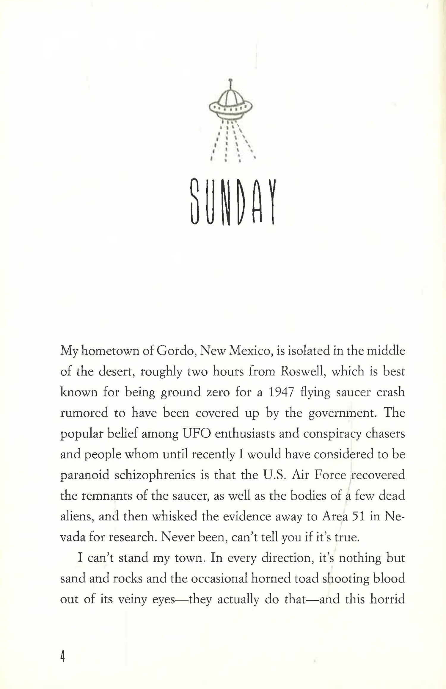 Just a few days before prom, Bennett pulls off something he never imagined possible: his dream girl, Sophie, agrees to be his date. Moments afterward, however, he watches Sophie get abducted by aliens in the middle of the New Mexico desert.